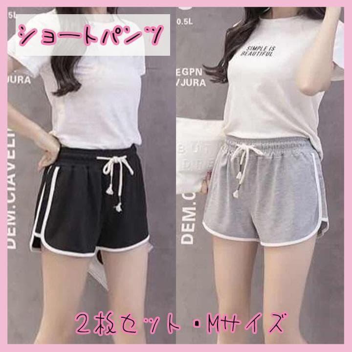M ブラック グレー 2枚セットショートパンツ ルームパンツ 韓国 ラインパンツ