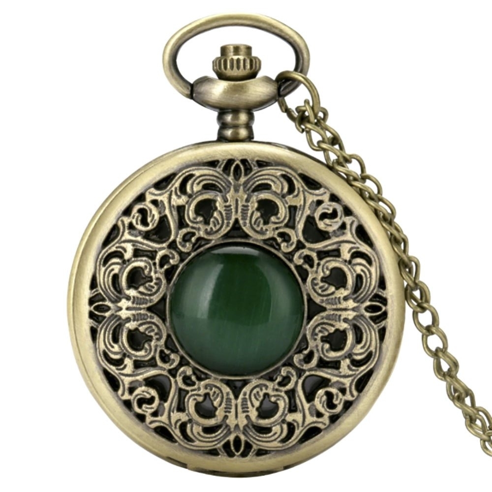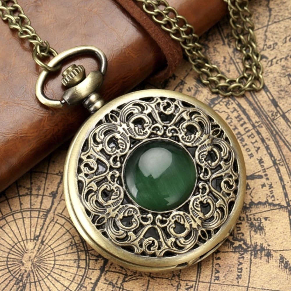 懐中時計 エメラルド ストーン アンティーク ゴールド チェーン付