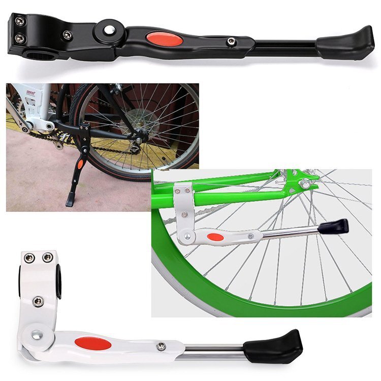 ◆自転車用サイドスタンド 20〜28インチ車用 軽量アルミ合金製 重さ280g 高さ調節可 滑り止め付 耐荷重20kg 取付簡単 ロードバイク MTB クロスバイクなどに最適 汎用キックスタンド 白黒2色あり CKSTD345/ブラック