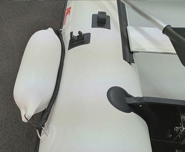 このフロートを装着しますとボート左右の防舷と船外機によるスターン部分の沈み込みを防止し、