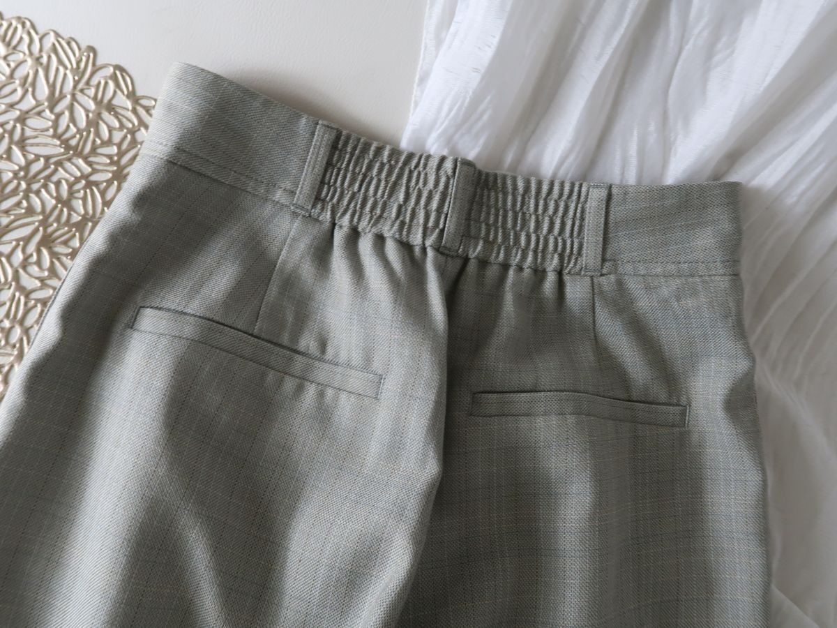 腰回りはゆとりをもたせつつ、裾にかけてやや細くなるシルエットで、すっきりと着こなせます。さりげないチェック柄でコーディネートに取り入れやすいのも嬉しいポイント。きちんと見えしつつも、バックゴム仕様で穿き心地は快適◎又、内側に入ったスリットが抜け感を演出してくれます。合わせるアイテム次第でオンオフで活躍する一着です。