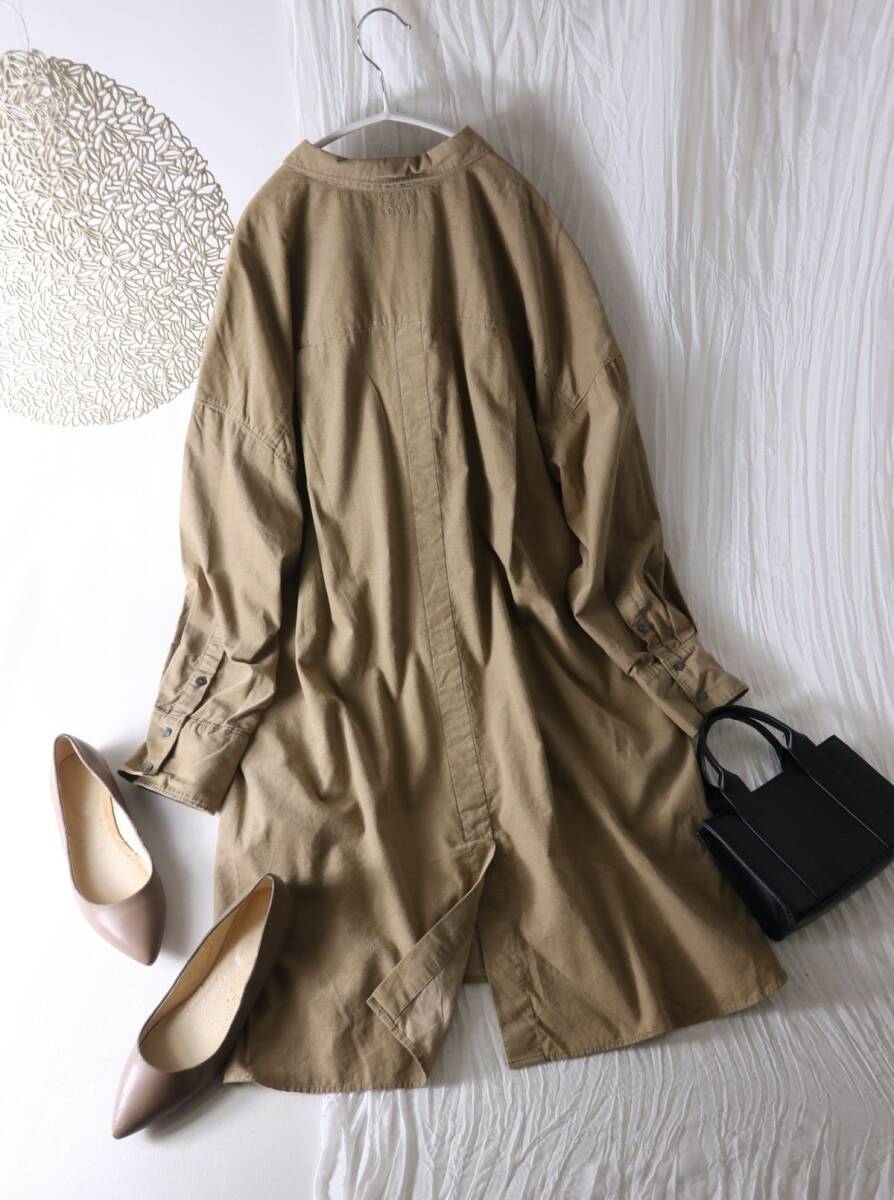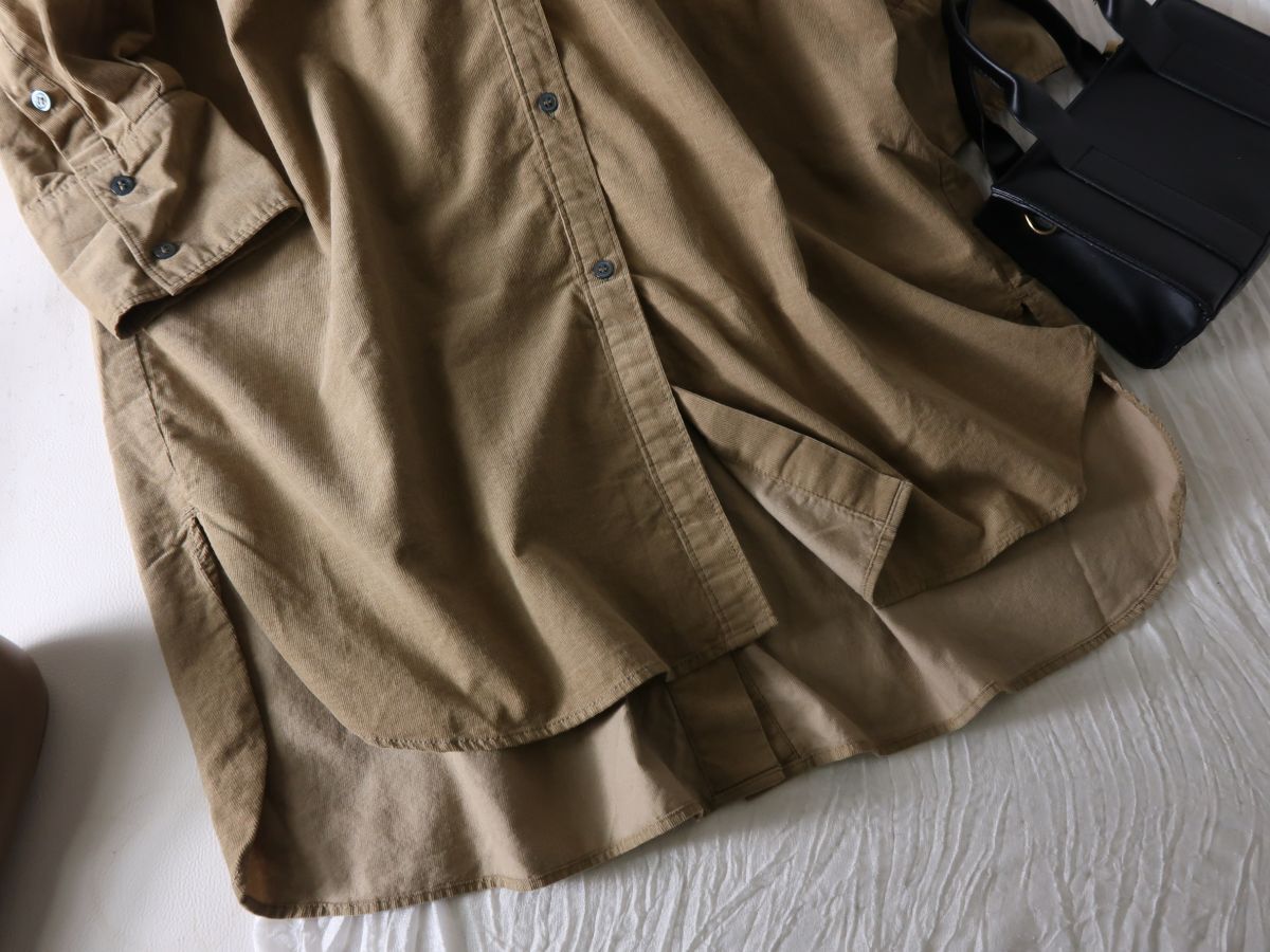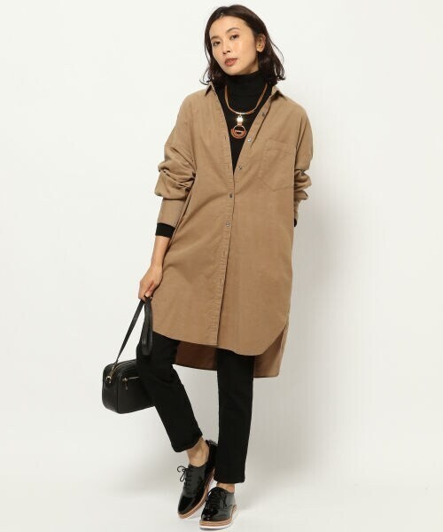 タートルニットとのレイヤードがおすすめ。デニムはもちろん、テーパードパンツでハンサムパンツスタイルに。Tシャツの上にサラリと羽織ったり、1枚でシャツとして着たり着回しが聞くアイテムです。長さがあるのでレギンスと合わせるのも○