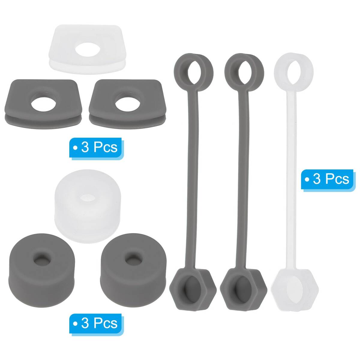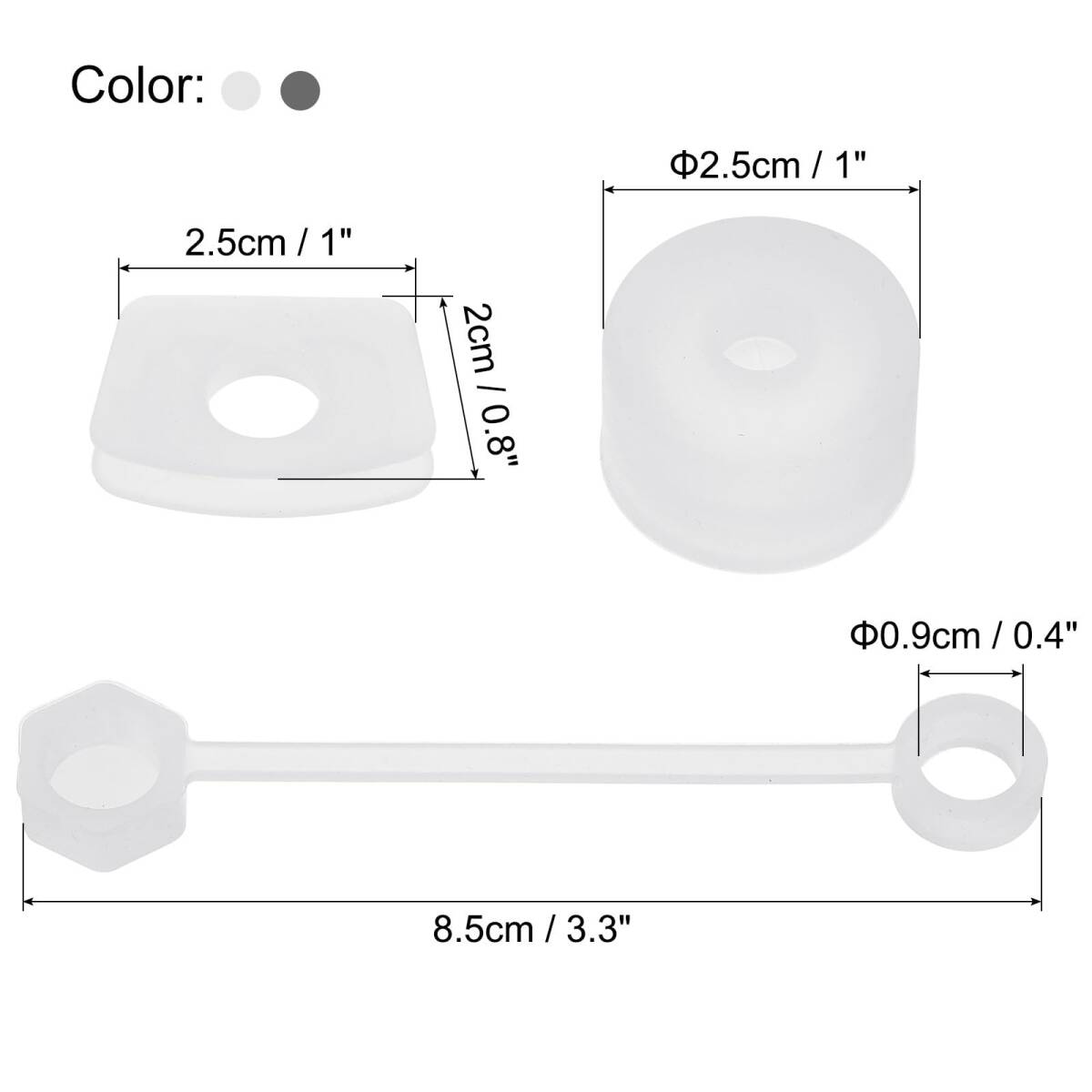 カラー:透明/グレー;ストローキャップサイズ:0.9x8.5cm / 0.4x3.3"(内径×長さ);丸い止めの直径:2.5cm / 1";四角いこぼれ止めサイズ:2.5x2cm / 1x0.8";梱包リスト:カップこぼれ止めセット1個(ストローカバーキャップ3個、四角いこぼれ止め3個、丸い漏れ止め3個)