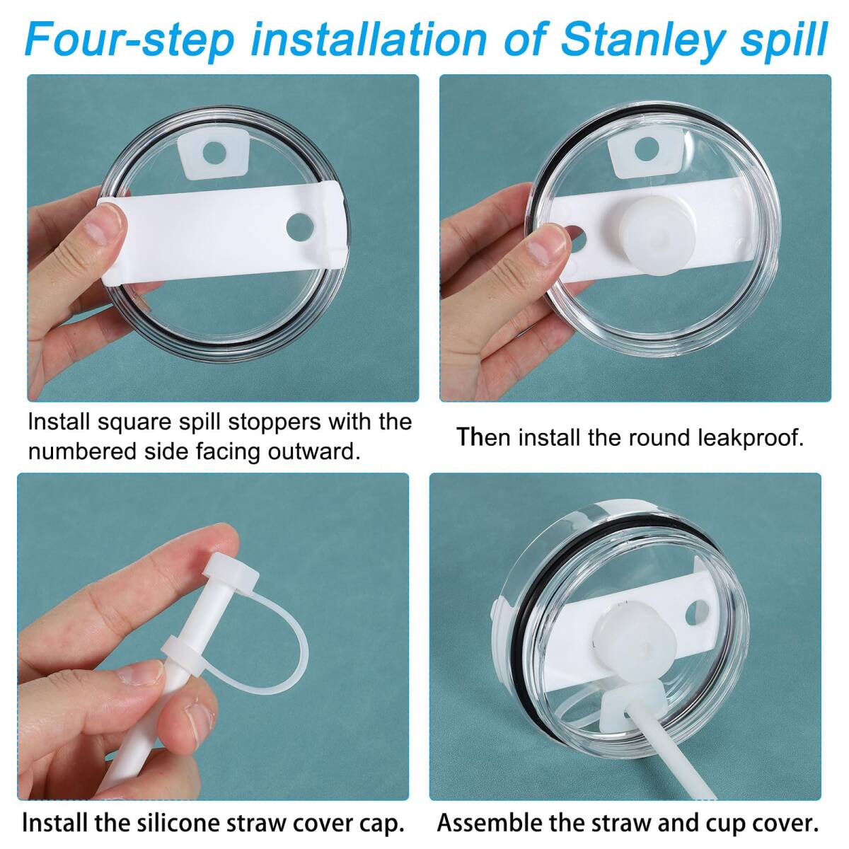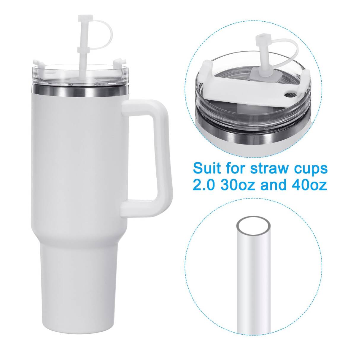 特徴:こぼれ止めはシリコン製で、柔軟性があり、耐久性があり、お手入れが簡単です。ストローキャップはストローから水がこぼれるのを防ぎ、ほこりを防ぎます。丸い止めはカップの内側に取り付けられ、密封を保ちながら空気を入れて飲みやすくします。四角い止めはカップの外側に取り付けられ、ストローを固定し、漏れを防ぐシールを形成します。