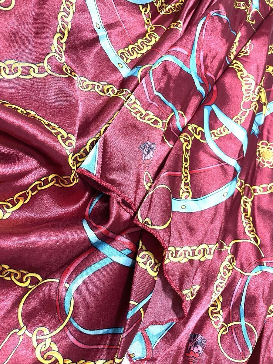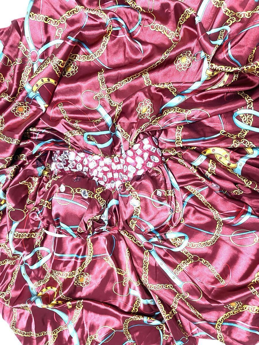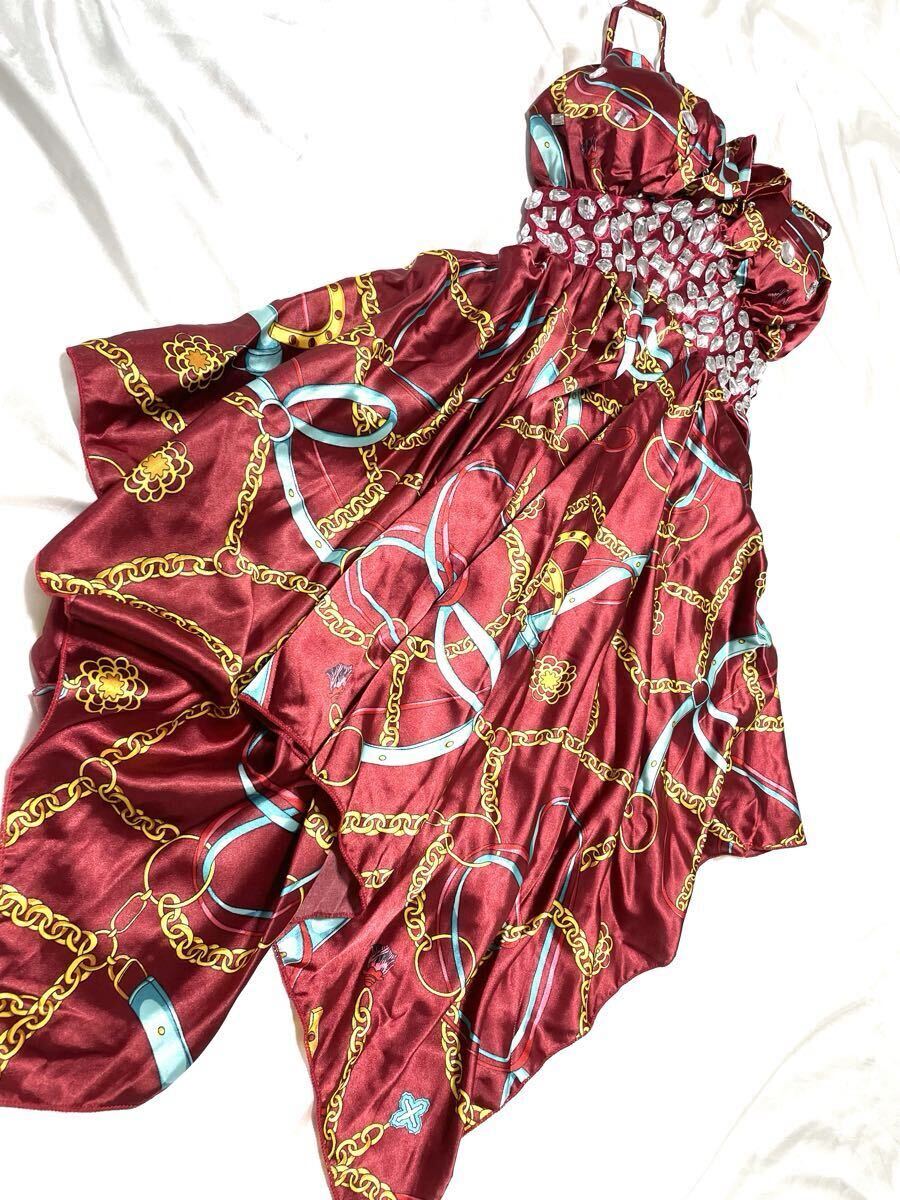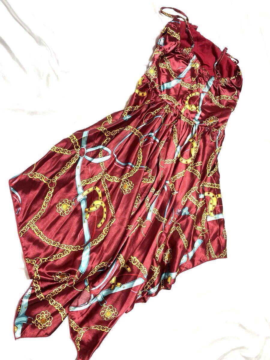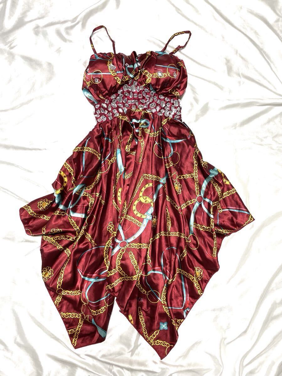 光沢サテン ドレスワンピ スカーフ柄 超つるつる超 ピカピカ アシンメトリー