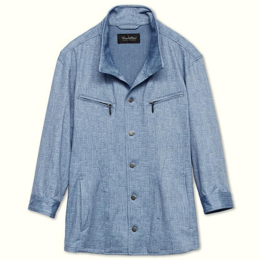 ■ムラデニム調のプリントを両面に施した7分袖シャツブルゾン