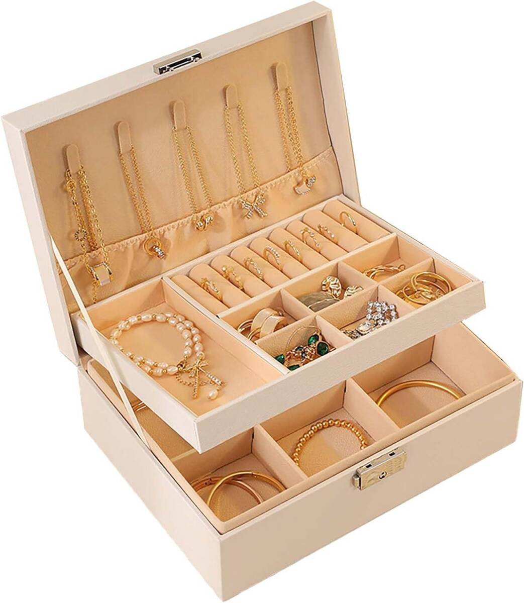 【大容量で2層構造、アクセサリーがたっぷり収納可能】アクセサリーケースは2層の収納スペースで、指輪やネックレスなど多くのアイテムを整理できます。使いやすく、アクセサリーを簡単に分けられるので、毎日のコーディネートがスムーズになります。