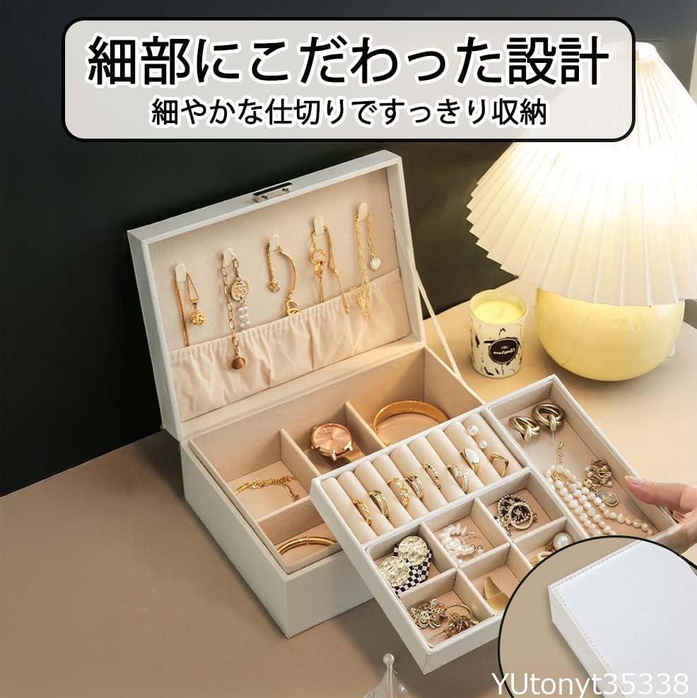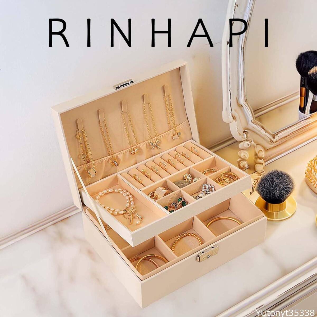 RINHAPI アクセサリーケース ジュエリーボックス 2層 大容量 (ホワイト)