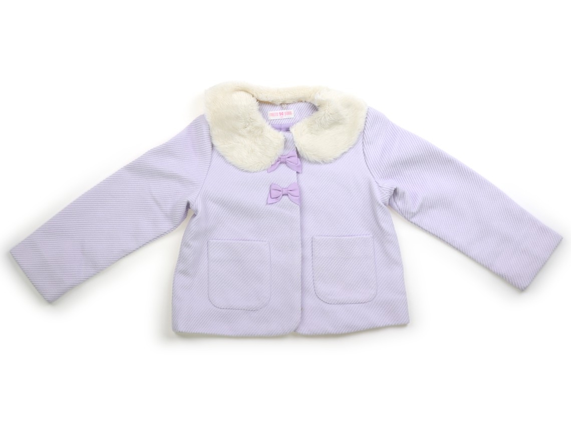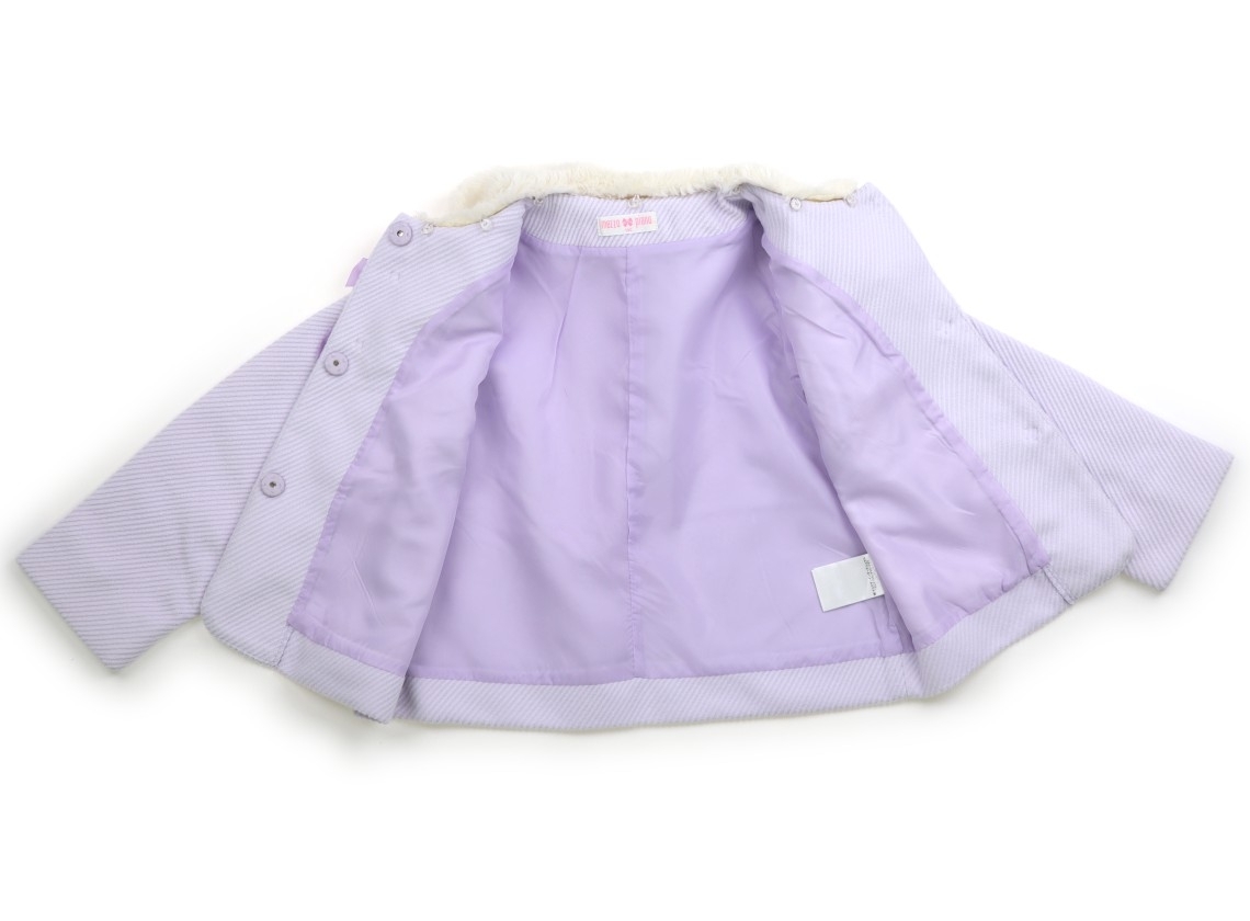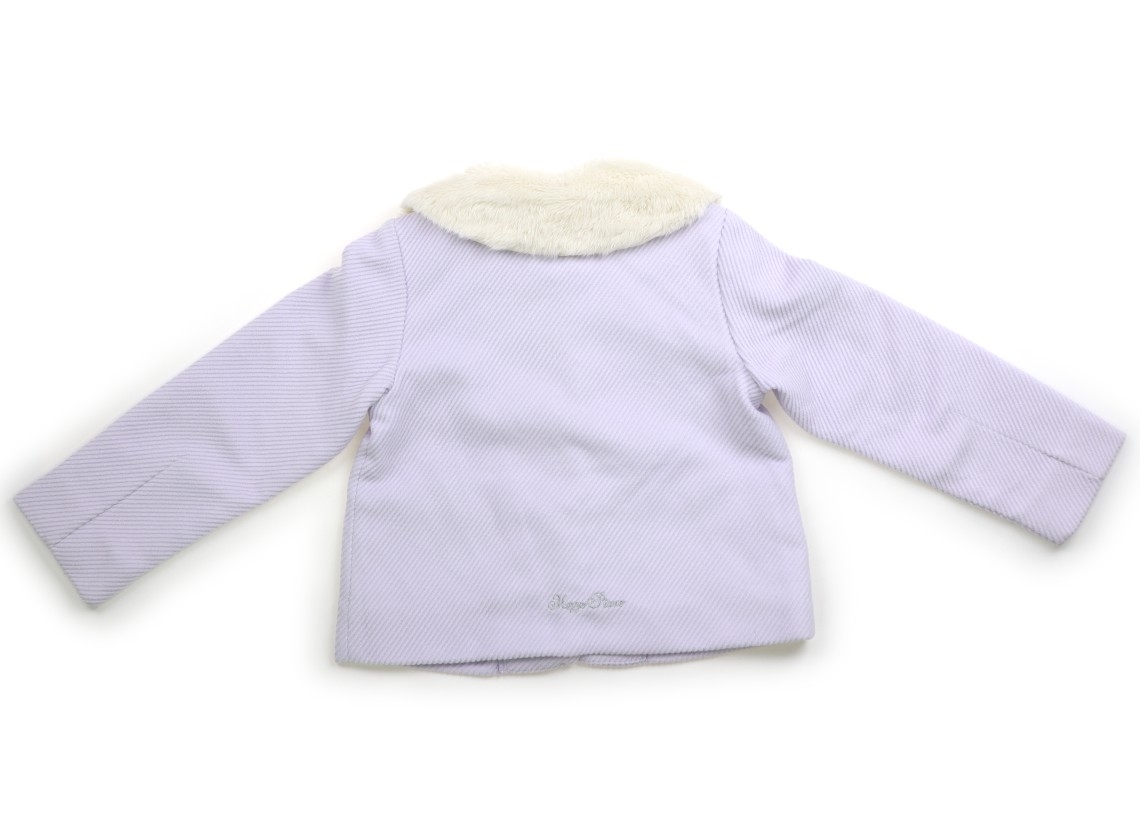 ポリエステル素材。ファーはアクリル。裏地付きです。袖口に薄汚れ、裾近くに黄色のシミあり。襟は取り外し可能で外すとノーカラーコートに変わります。