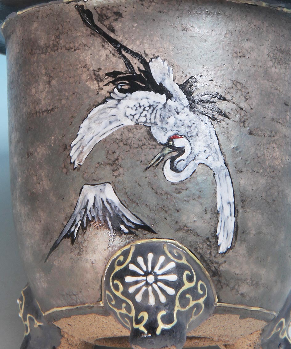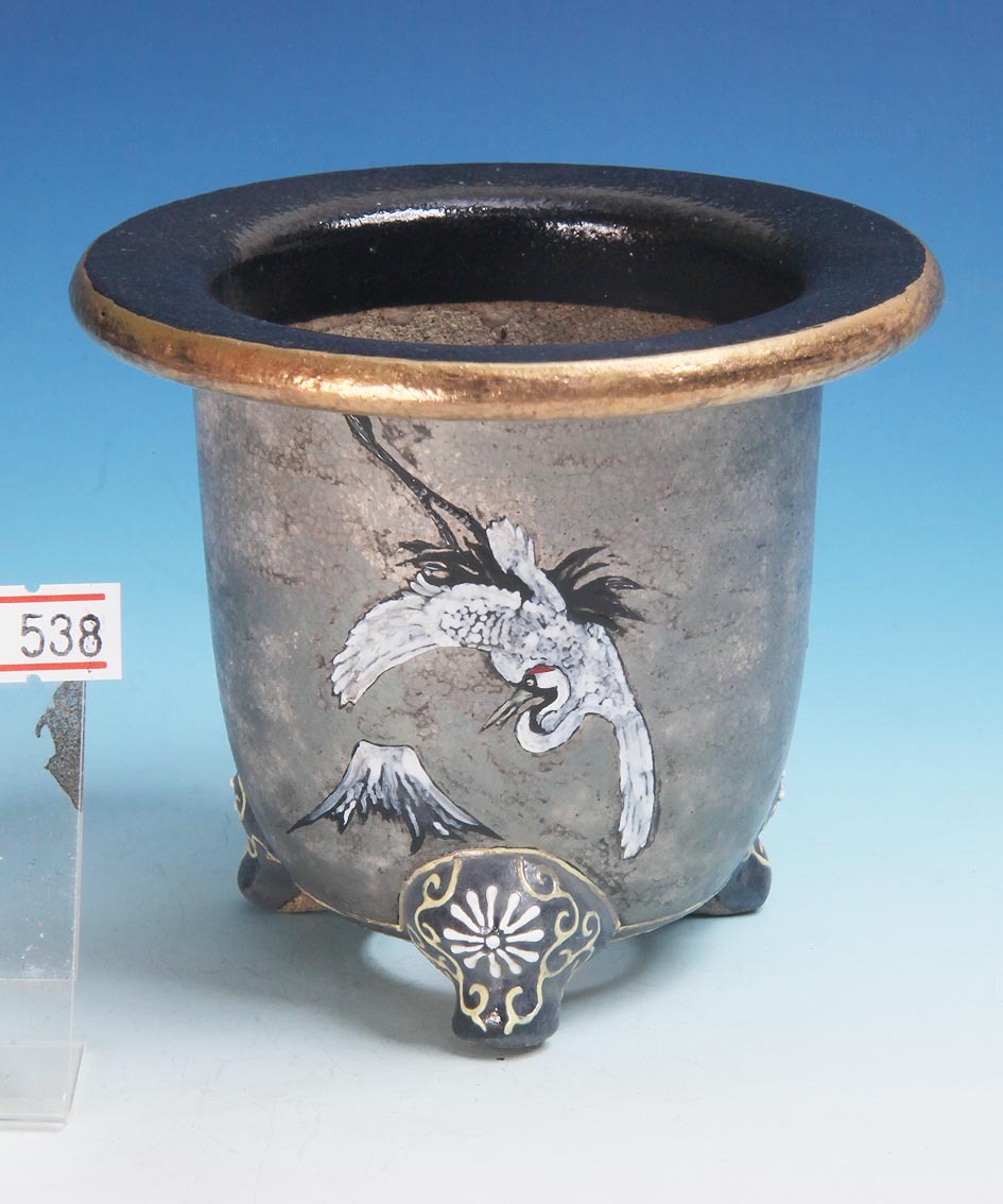 №538 錦鉢 「富士に鶴」京楽焼 羽蝶蘭鉢3.5号鉢 奏山 #蘭鉢 #万年青鉢