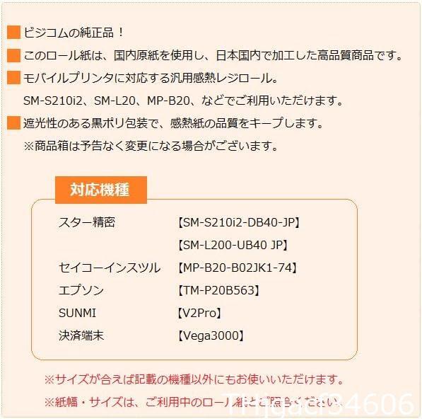 ビジコム純正 国産 感熱レジロール紙 58mm幅×外径40φ×内径12mm 6巻入 芯あり ノーマル保存 MP-B20・SM-L2