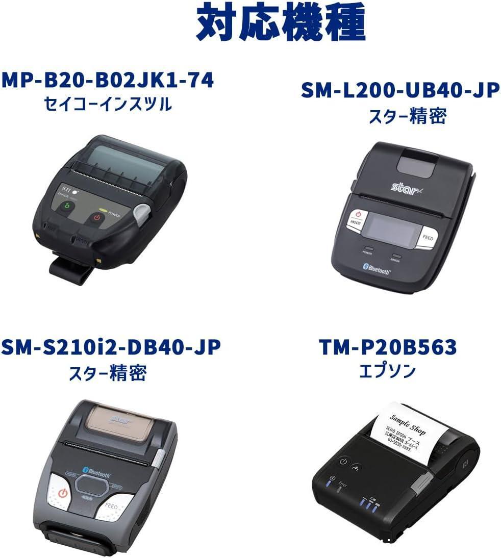 ロールの直径40mm スター精密・SM-S210i/SM-L200、セイコー・MP-B20 など、モバイルプリンタに対応。Airレジ,Airペイ,STORES(旧:Coiney),スマレジなど、各レジ・決済アプリのレシート印刷に。