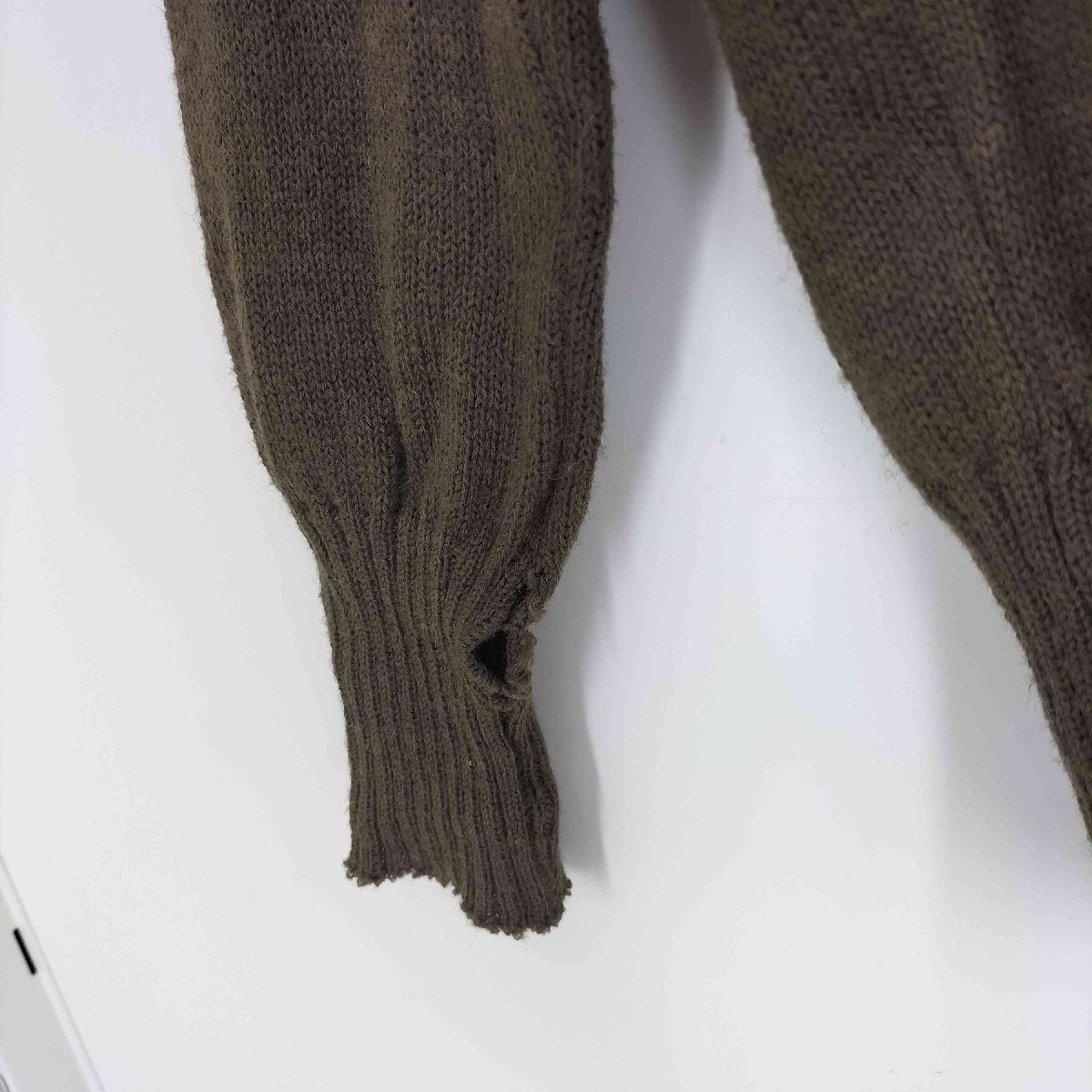 | 状態詳細 | 第三ボタン欠損、右袖口にホツレによる穴、全体的に毛羽立ち、毛玉、使用感がございます。 |