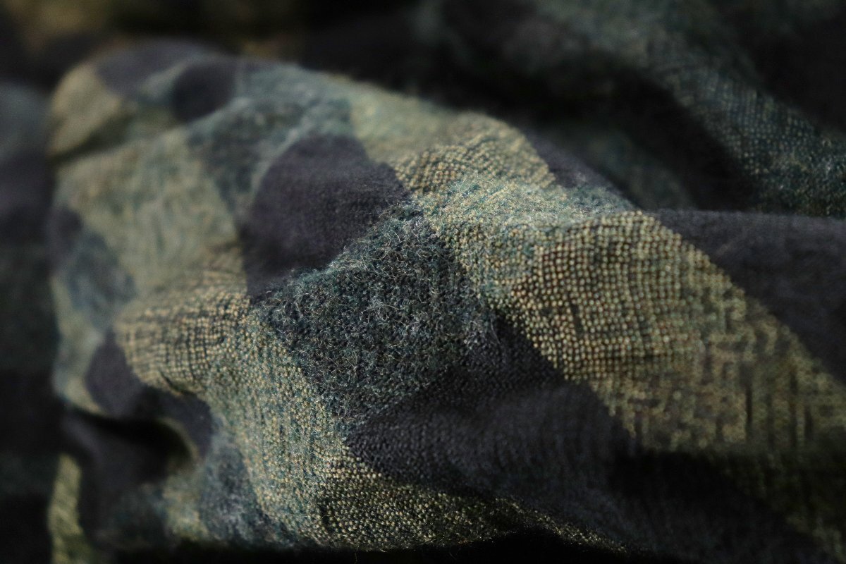 黒や緑を基調としたチェック柄のグラデーションが特徴で、