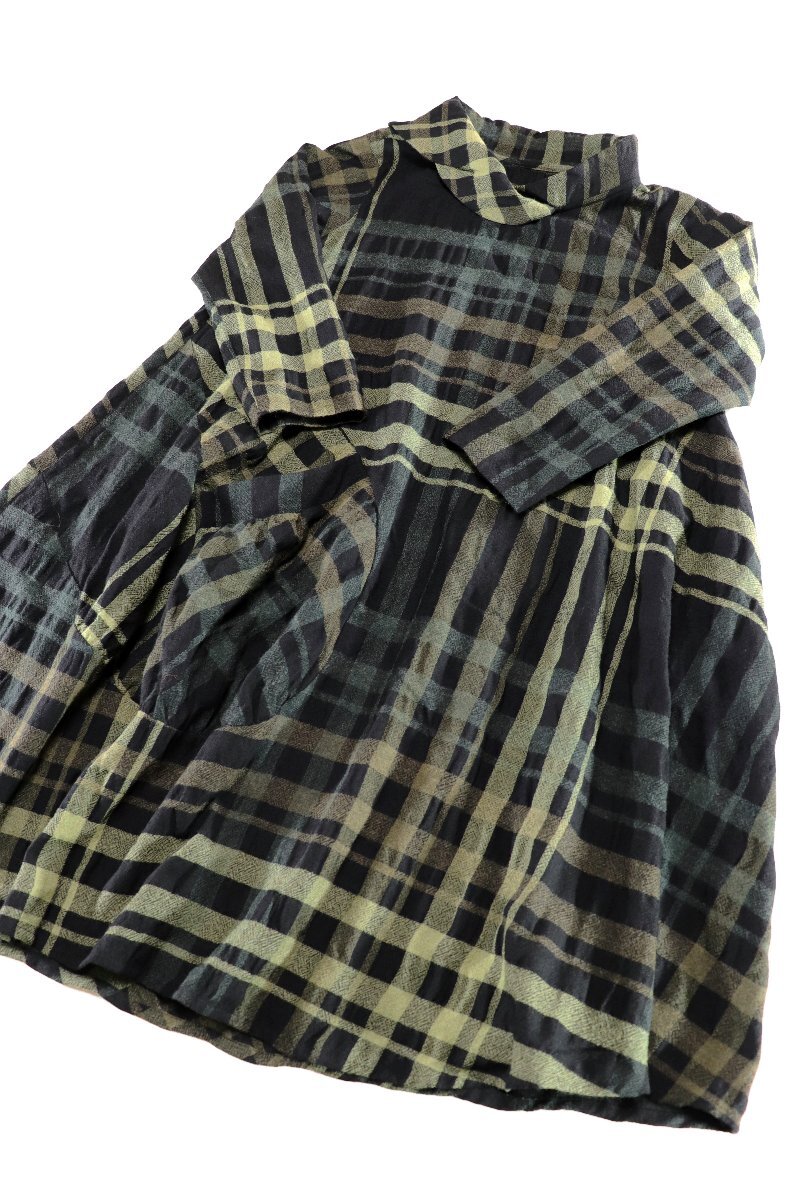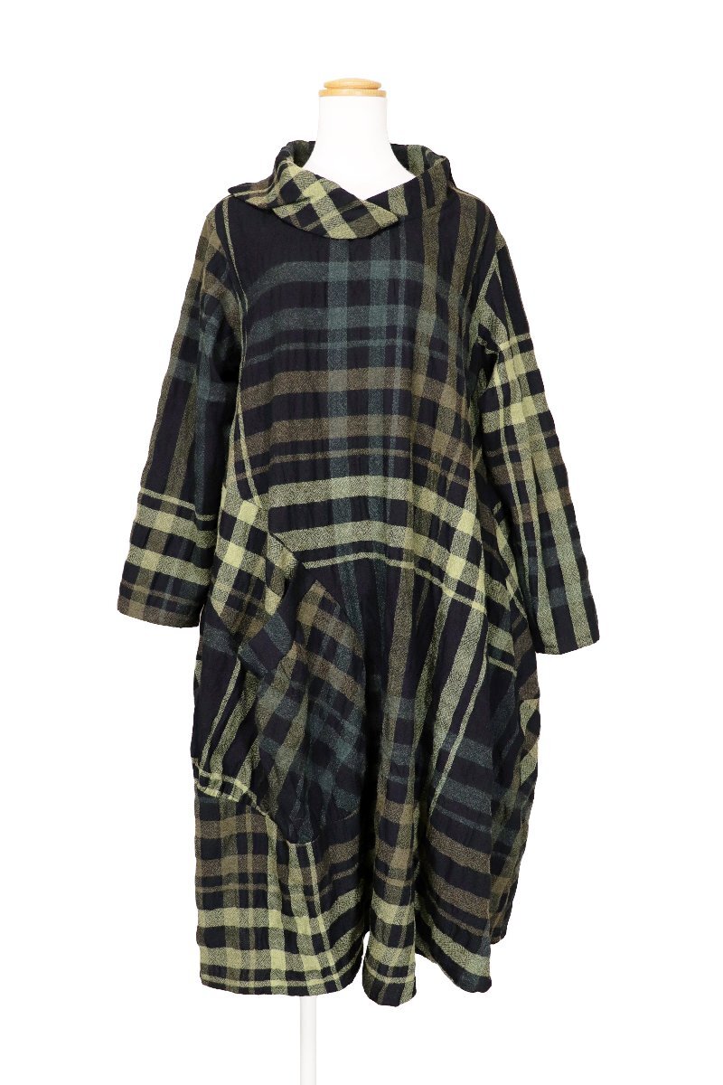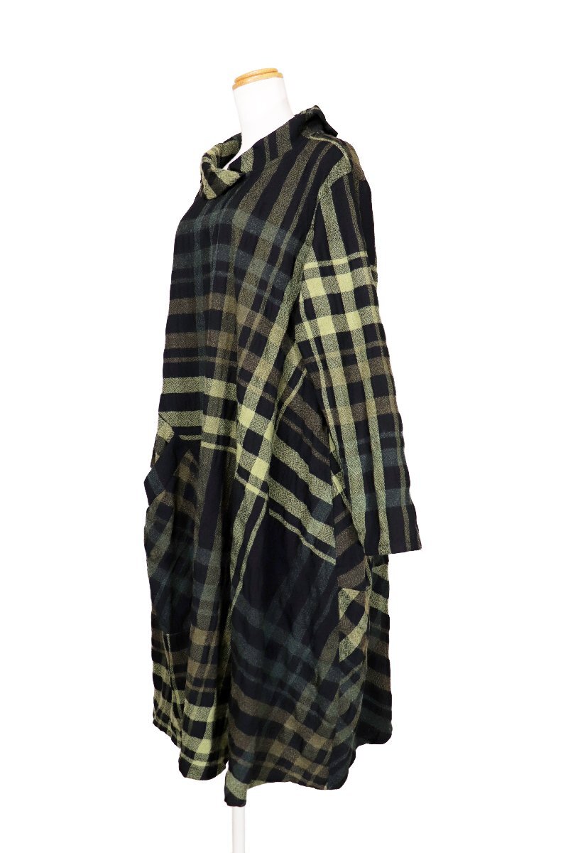☆美品☆慈雨センソユニコ/チェック柄ウールワンピース定価6.6万:40/黒緑系xz828