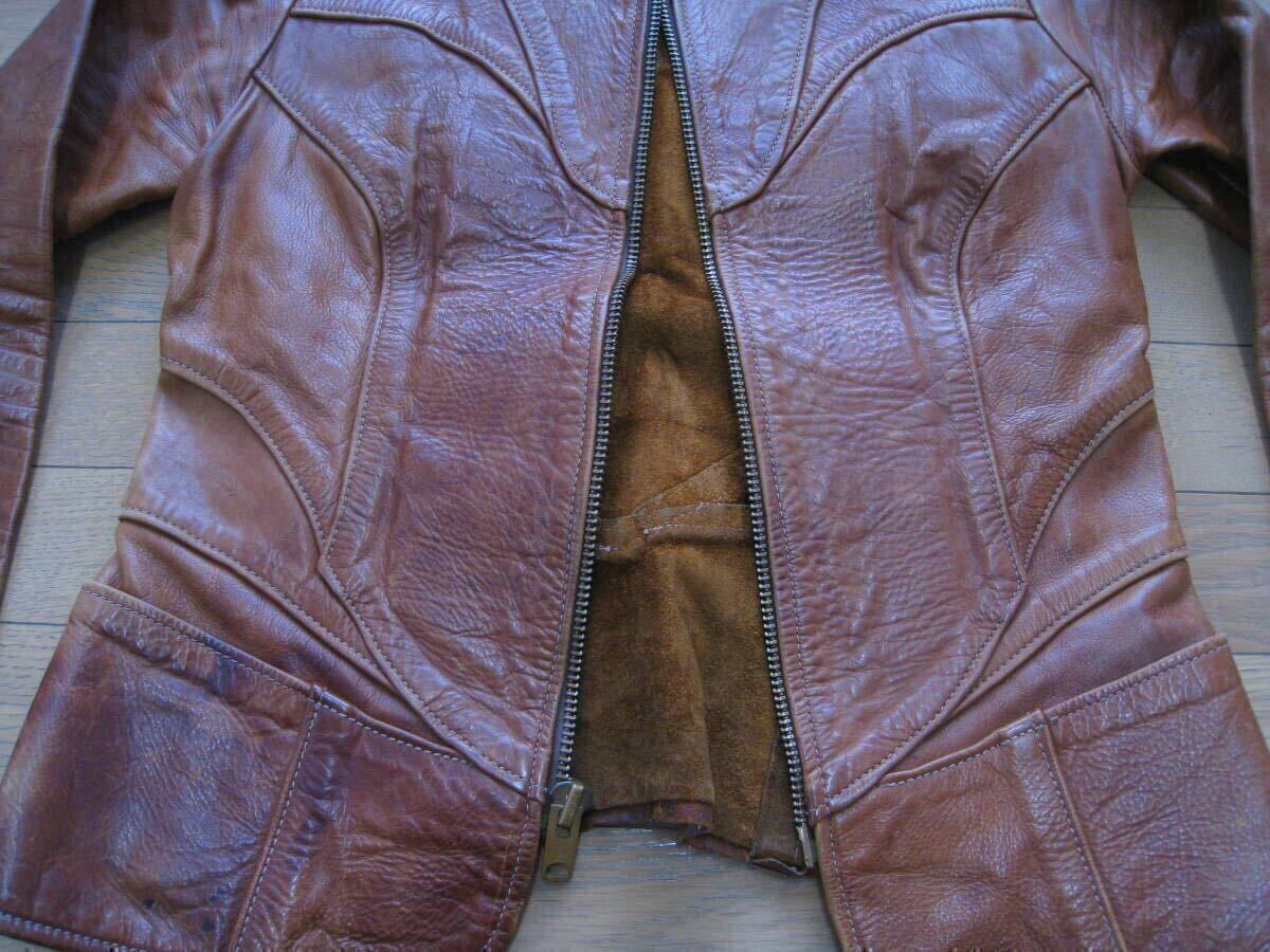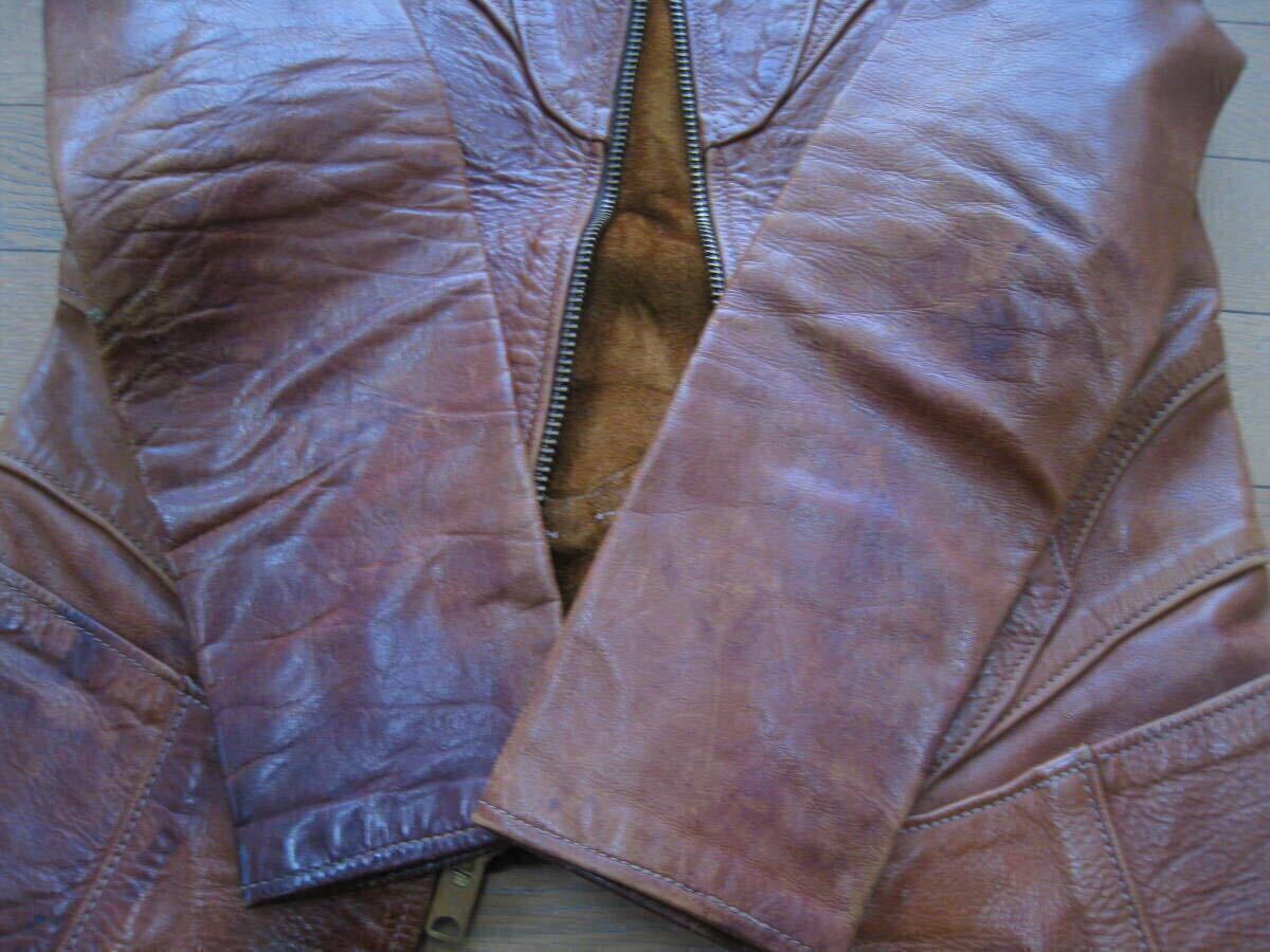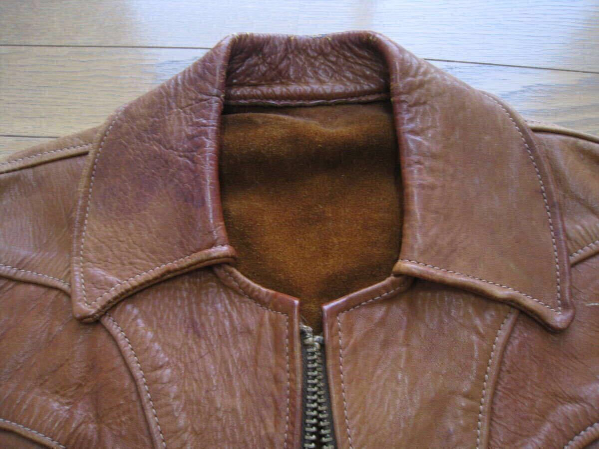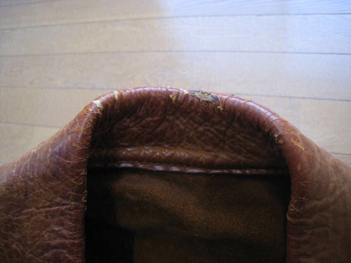 状態は、ユーズドなので着用感はあり、画像の方をご覧頂くとお分かりになると思いますが、襟の折れている部分にダメージがあり、右裾・右袖先辺りにオイルの入りすぎか?染みなのか分かりませんが、色の濃い部分があります。