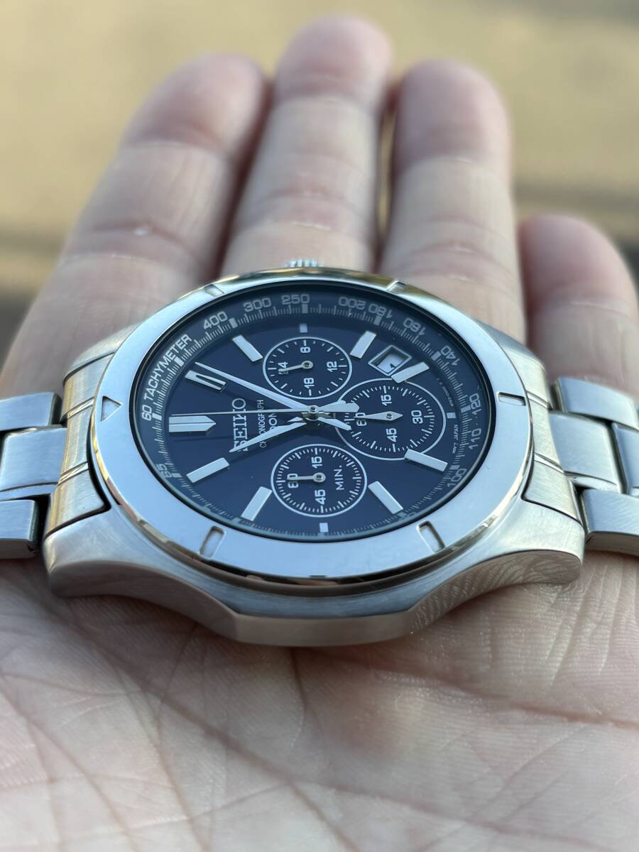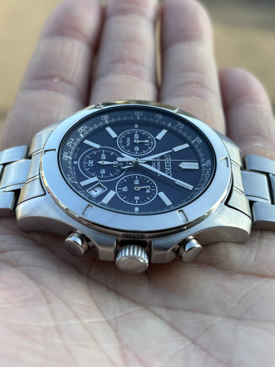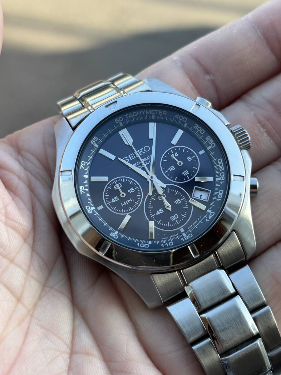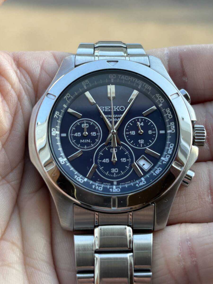 セイコー クロノグラフ 6T63ー00G0 新品電池 メンズ腕時計 稼働品 ブルー文字盤 クォーツ SEIKO 格安スタート