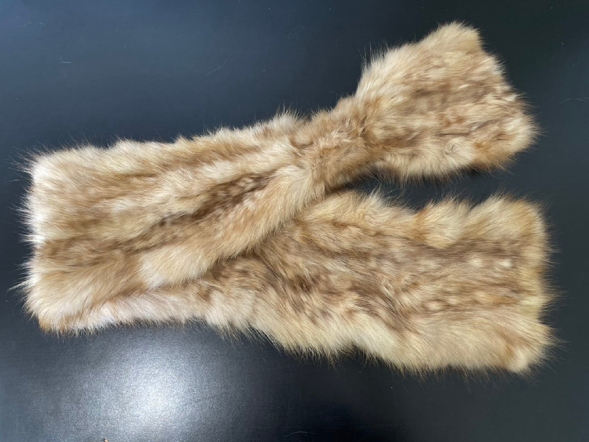 S92●毛皮 ファー ショール マフラー ティペット ベージュ系 フェイクファー リアルファー レディース●