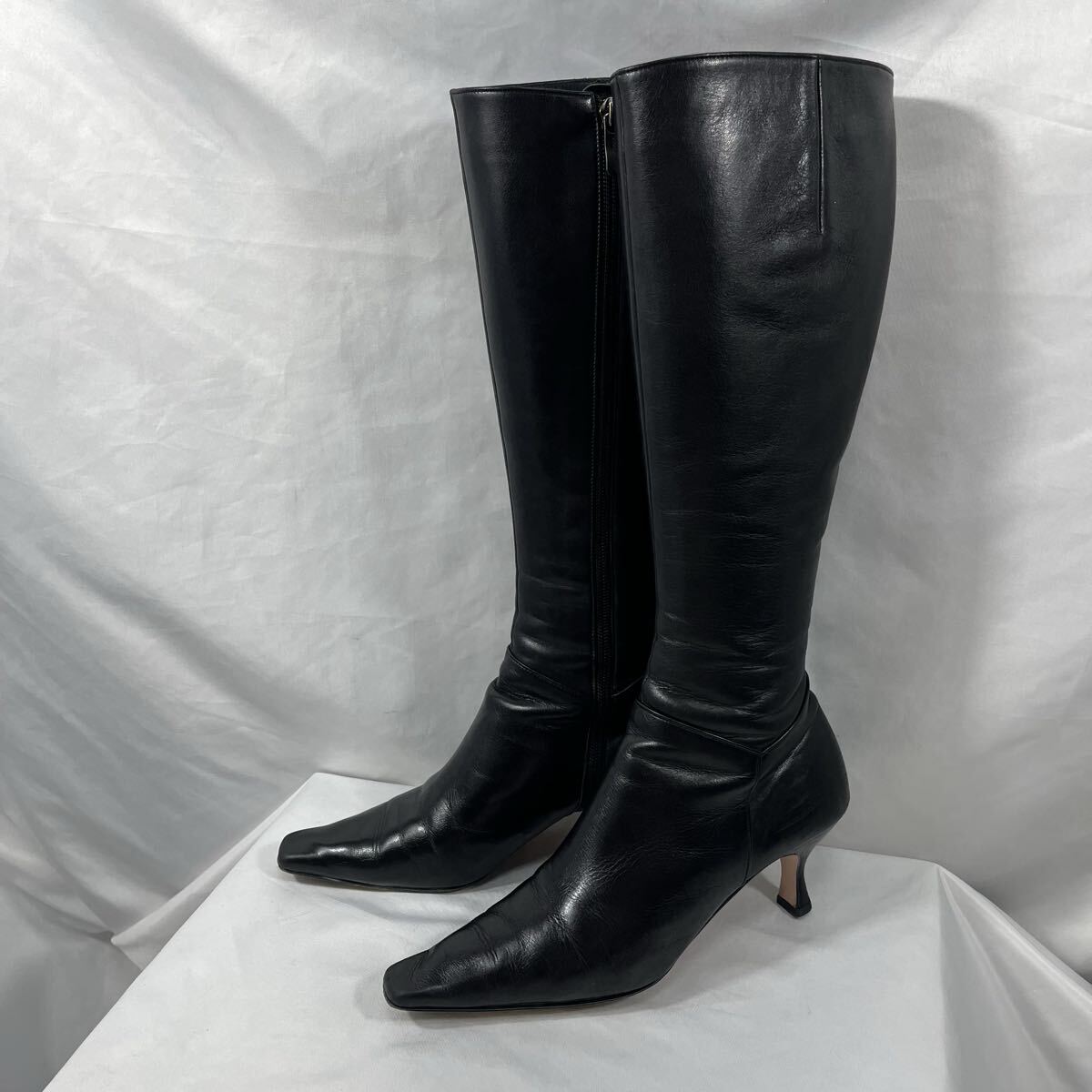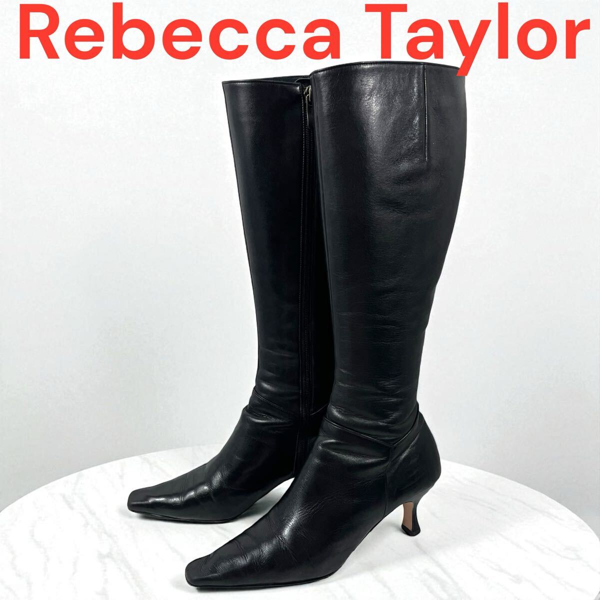 【人気】 Rebecca Taylor レベッカ テイラー ブラックレザー ロングブーツ ヒール サイドジップ 本革 になります()