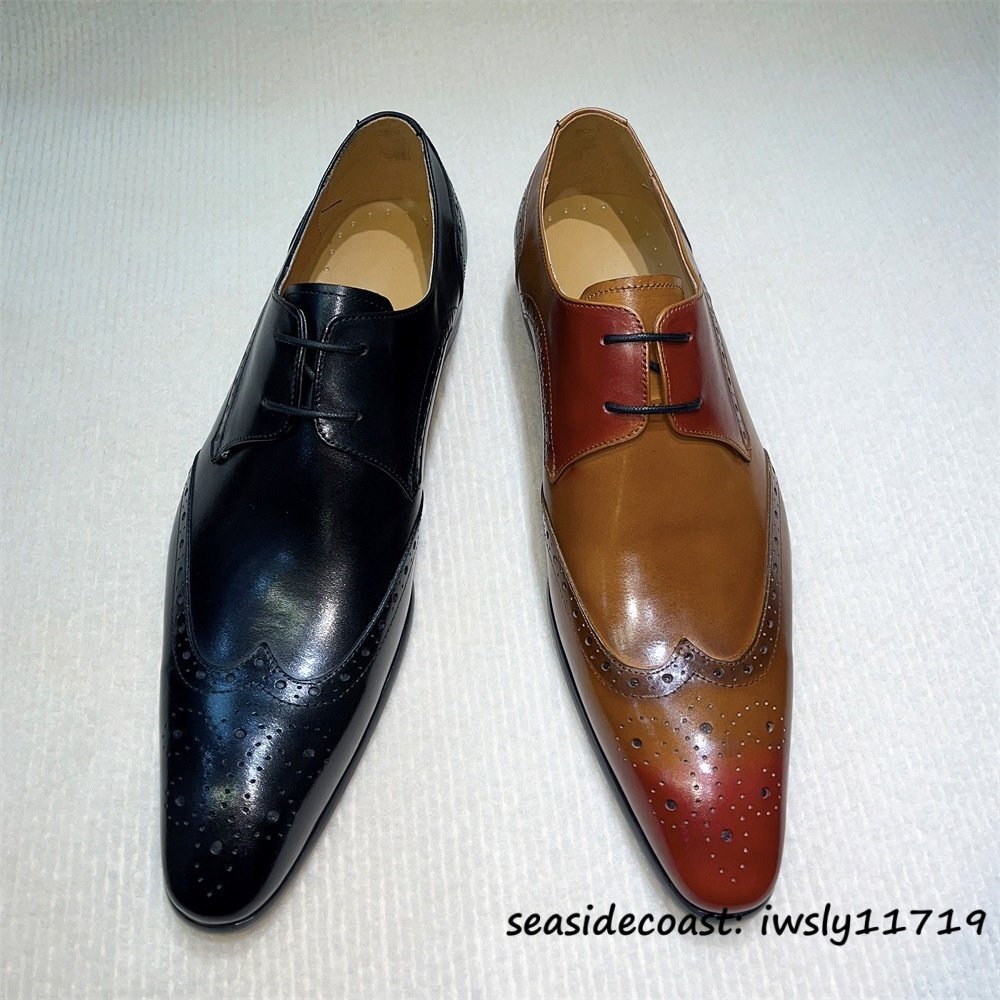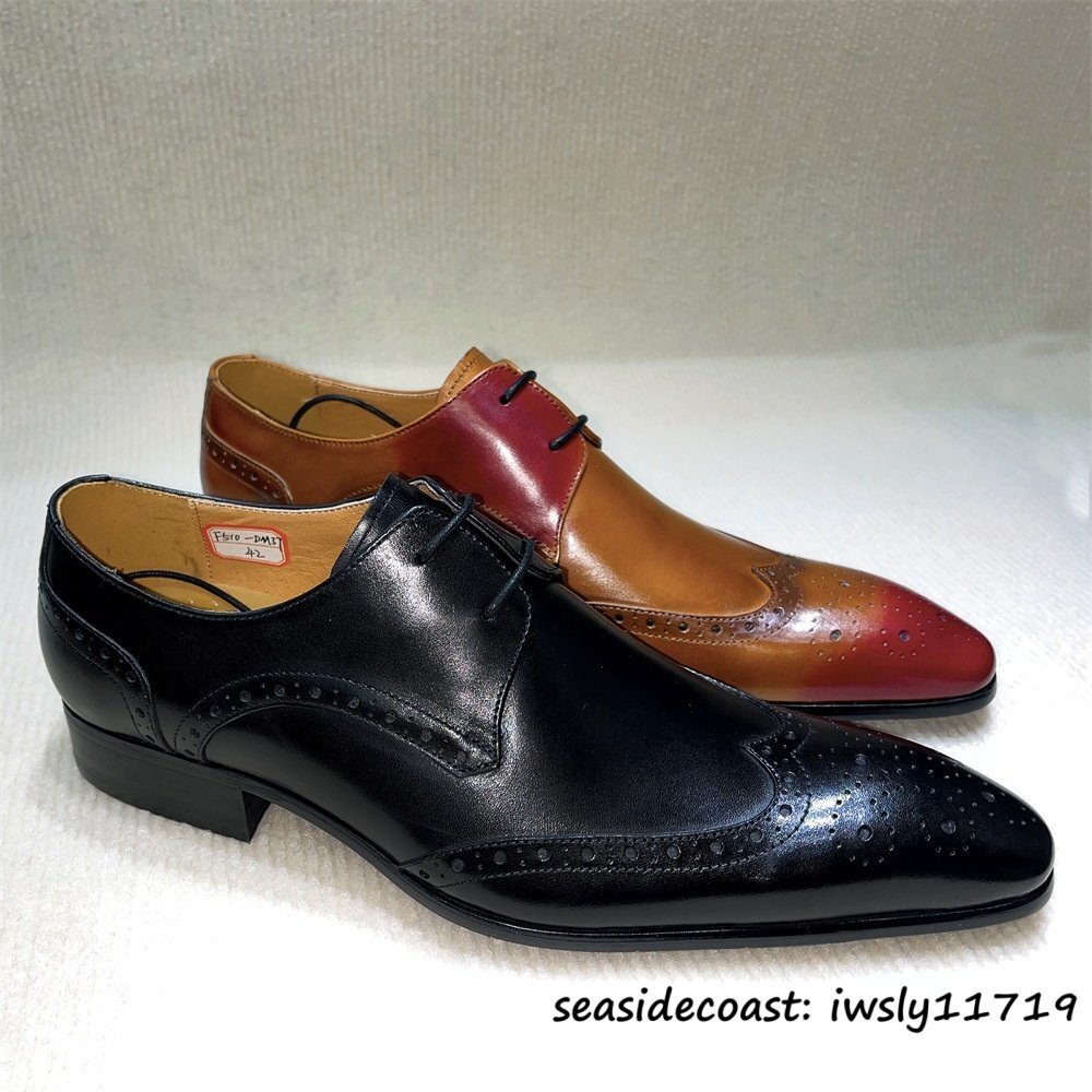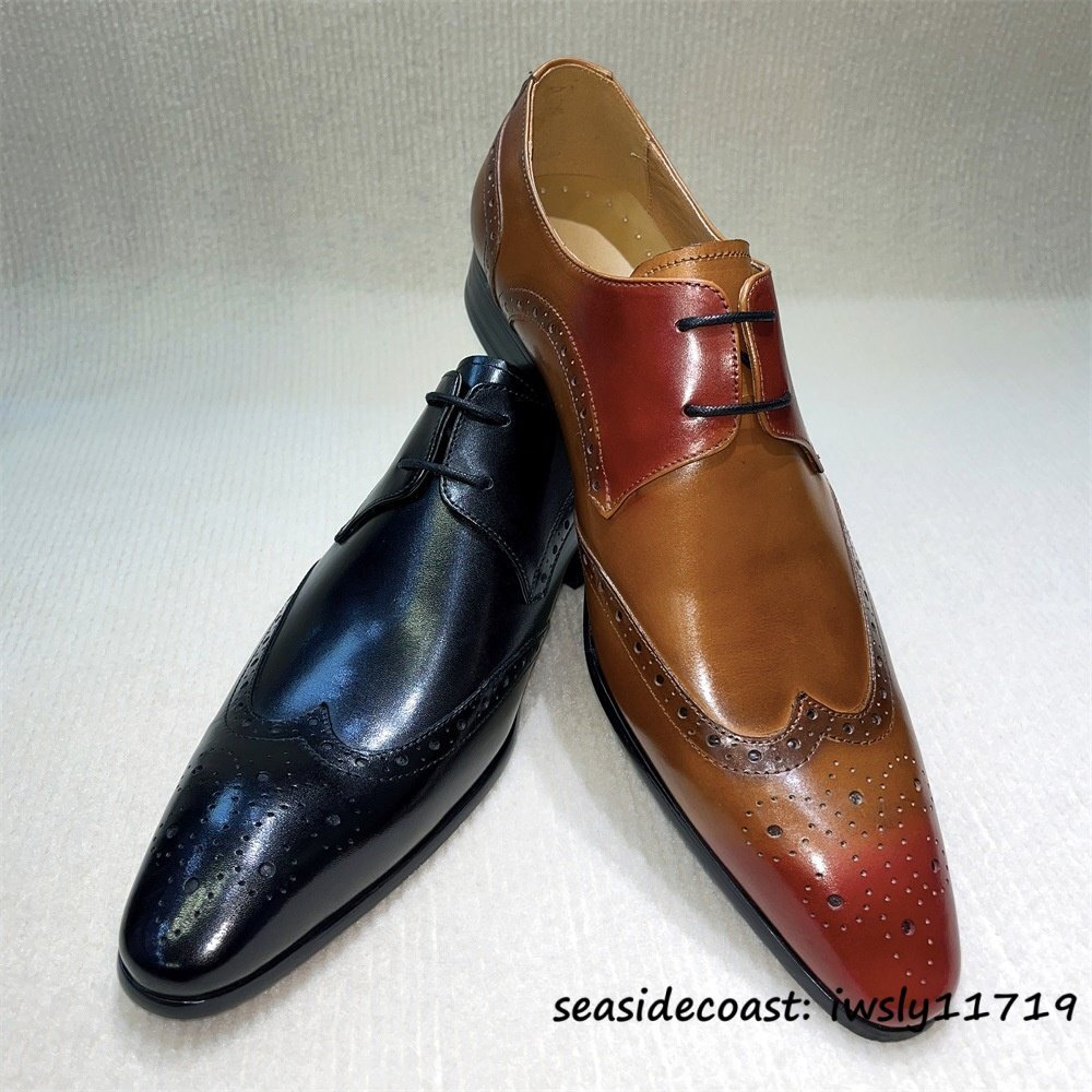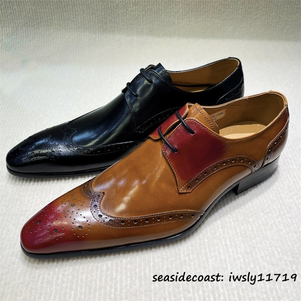 超美品★定価9万 ビジネスシューズ 本革 メンズ レザーシューズ 職人手作り 彫り 高級牛革 紳士靴 革靴 宴会 結婚式 新品 ブラウン 25.0cm