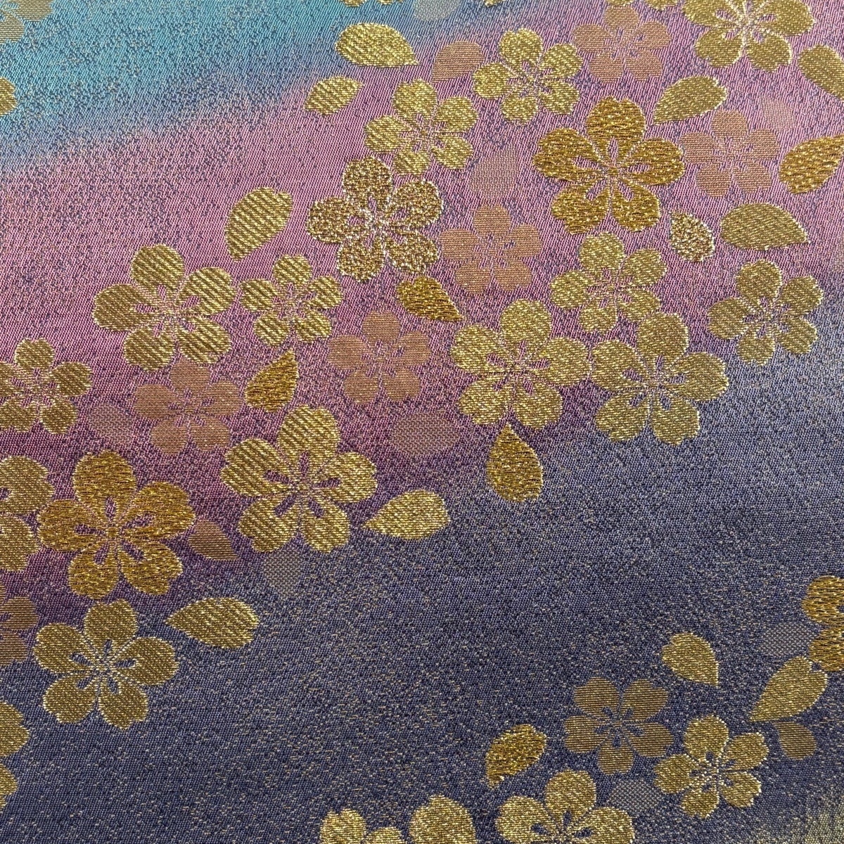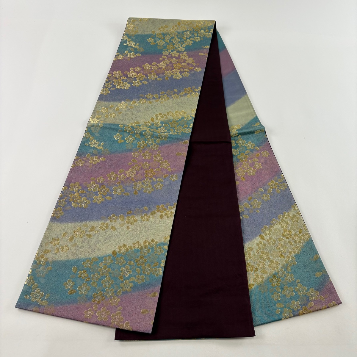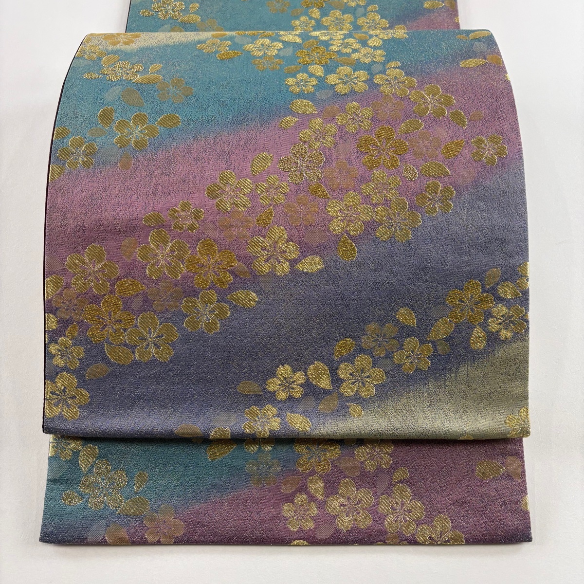 | 袋帯 美品 秀品 桜 花びら 金糸 箔 水色 六通 正絹 【中古】 |