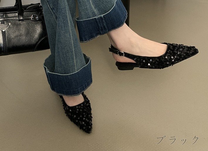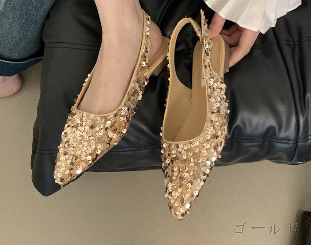 【高品質】全3色 スリッポン ローファー モカシン とんがりトゥ 無地 スパンコール シンプル 37 シルバー