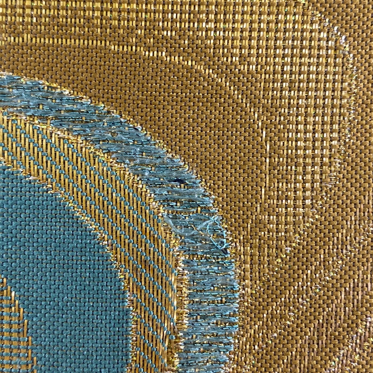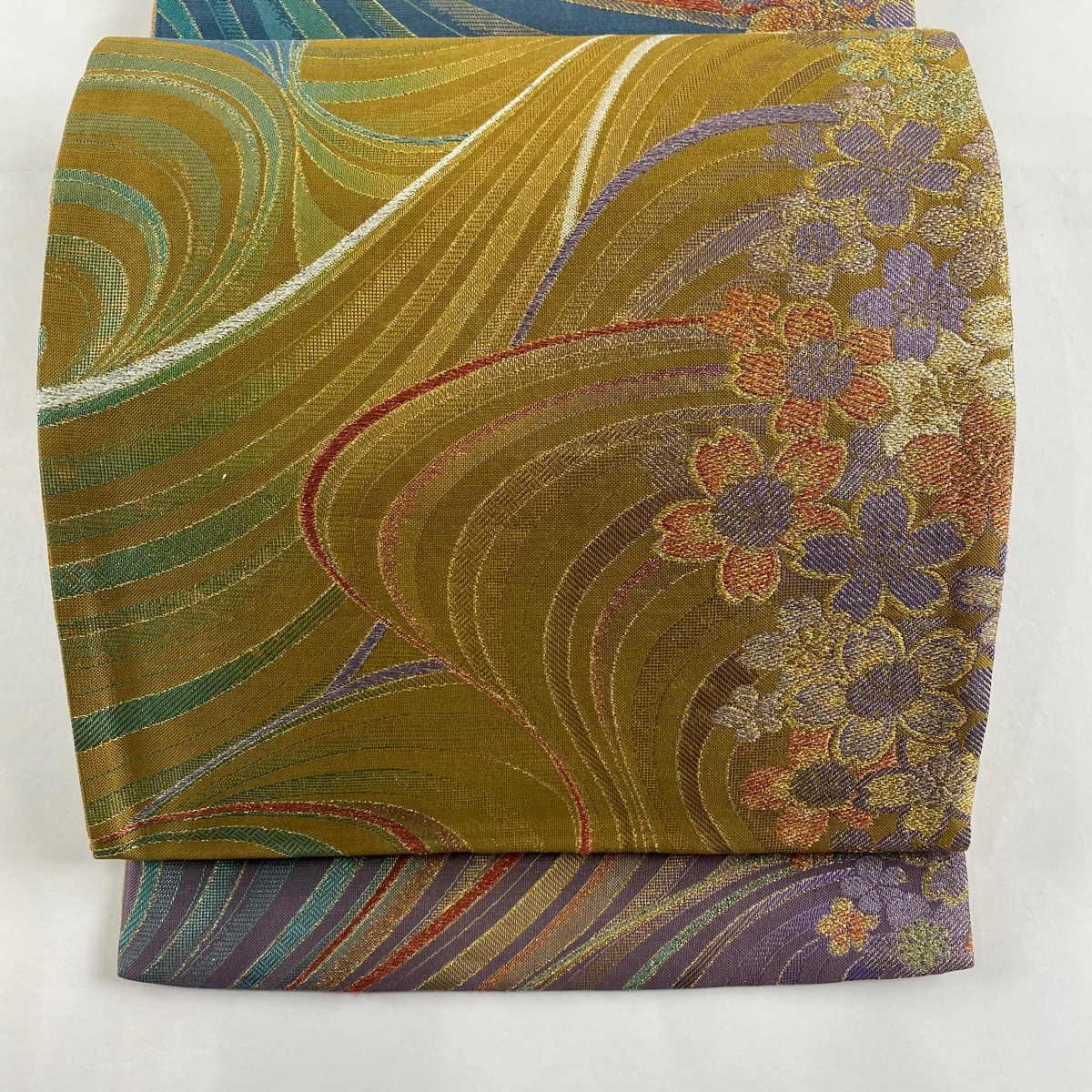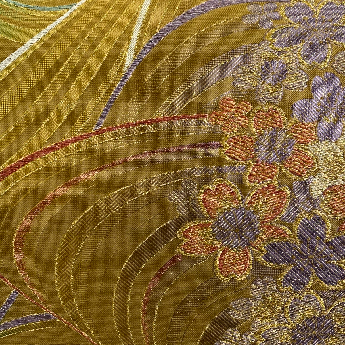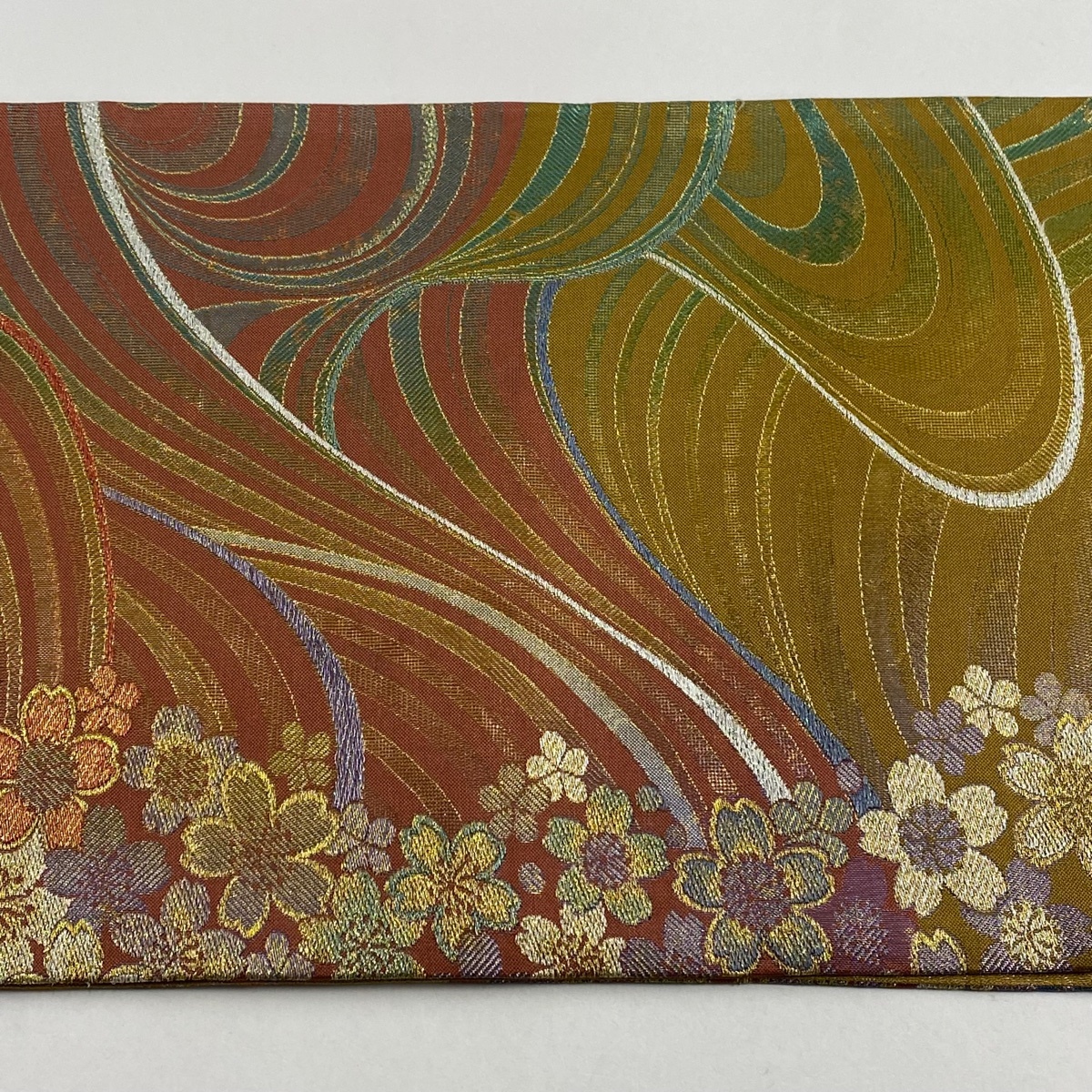 | 袋帯 秀品 桜 幾何学 箔 金糸 黄土色 六通 正絹 【中古】 |