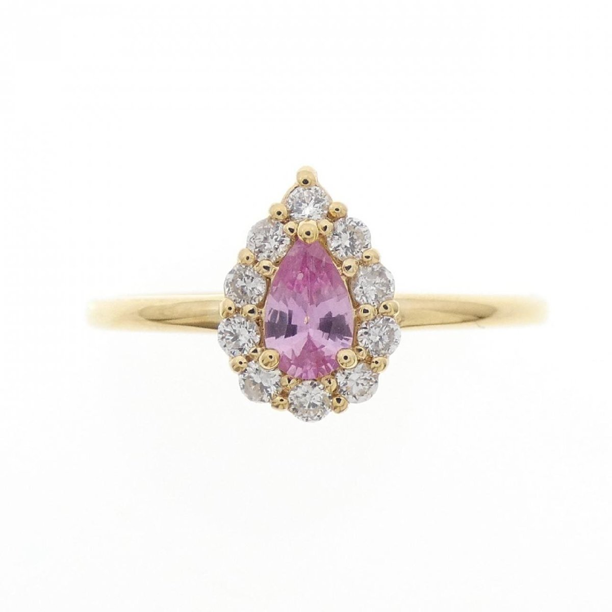 透明感のあるピンクのサファイヤとキラリと輝くダイヤモンドがセッティング。華奢なデザインがフェミニンな指元に仕上げます。