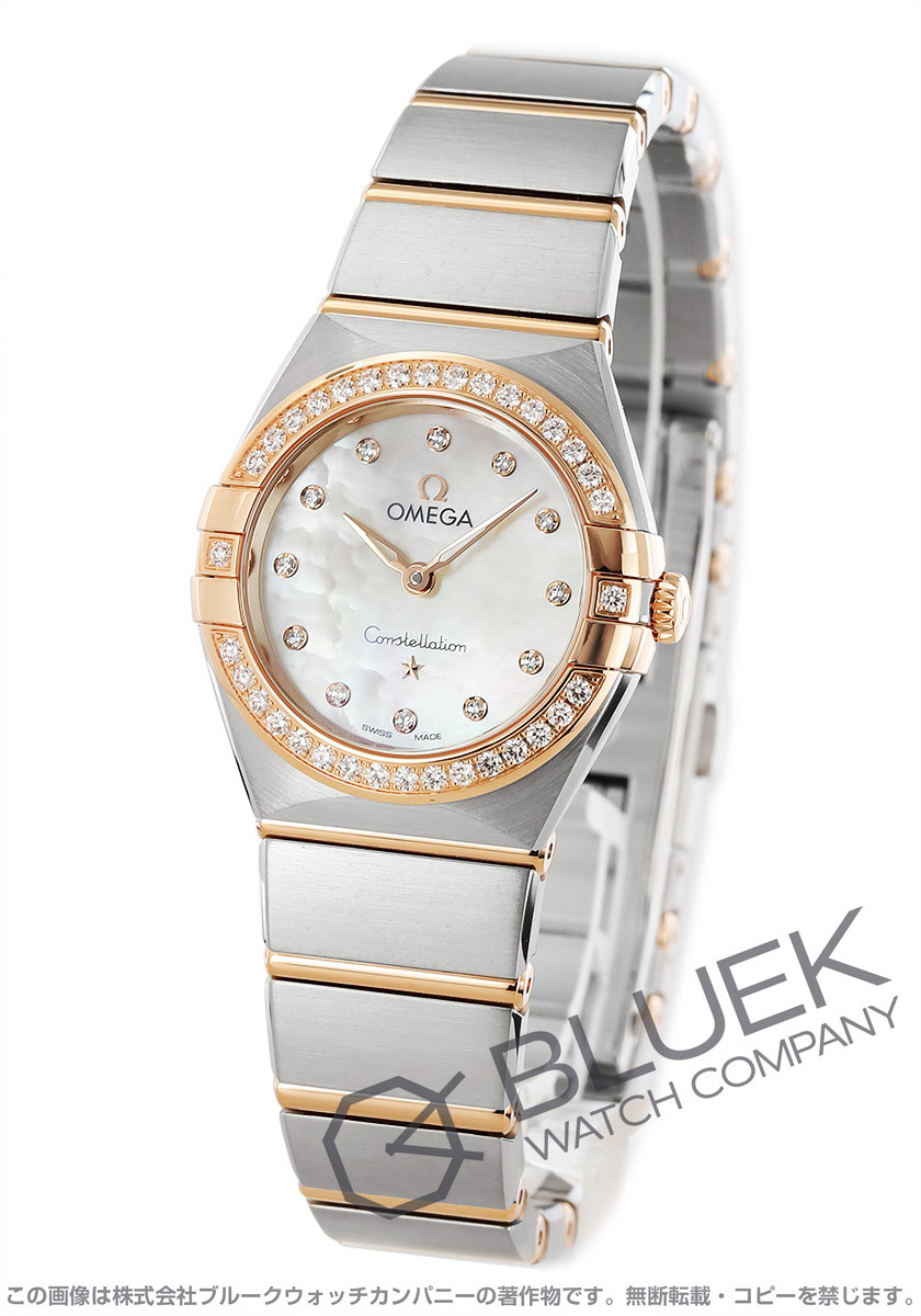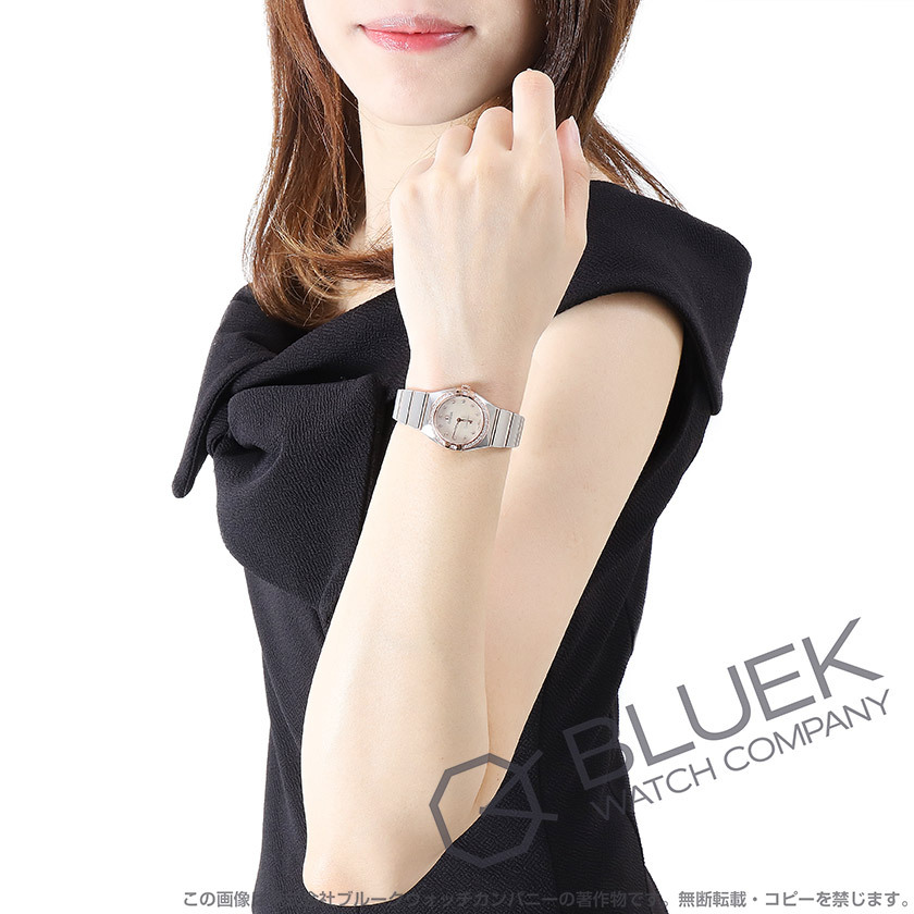 | ベゼルに34粒、ホワイトシェルダイヤルにダイヤモンド12粒煌めく厚さ8ミリの25ミリケース&ブレスの18Kセドナゴールド製コンビデザイン小ぶりなサイズも腕にしっくり馴染むマンハッタンは、都会を闊歩する女性の装いを手元からラグジュアリーに彩るオメガ人気のタイムピース。12時のオメガマークからスケルトン指針、6時の星、ダイヤモンド台座にも18Kセドナゴールドがあしらわれて細部まで高級感を香らせます。中でもローマ数字刻むベゼルを4つの爪が掴んだ佇まいにもオメガ伝統のデザインコードを受け継ぐこのモデルは、プッシュ式の両開きバックルも魅力。洗練されたコンビデザインが幅広い装いにマッチして使い勝手に優れます。 |