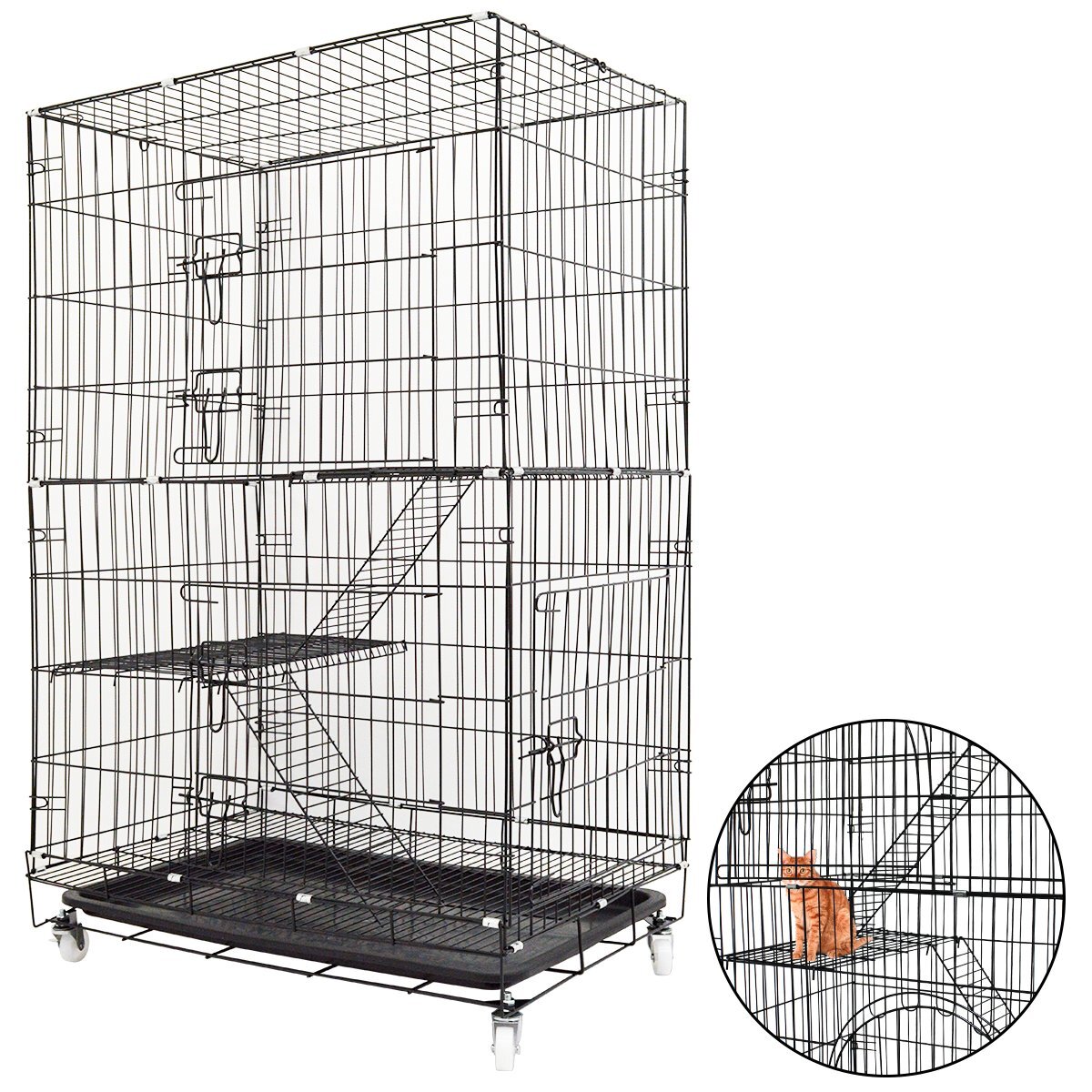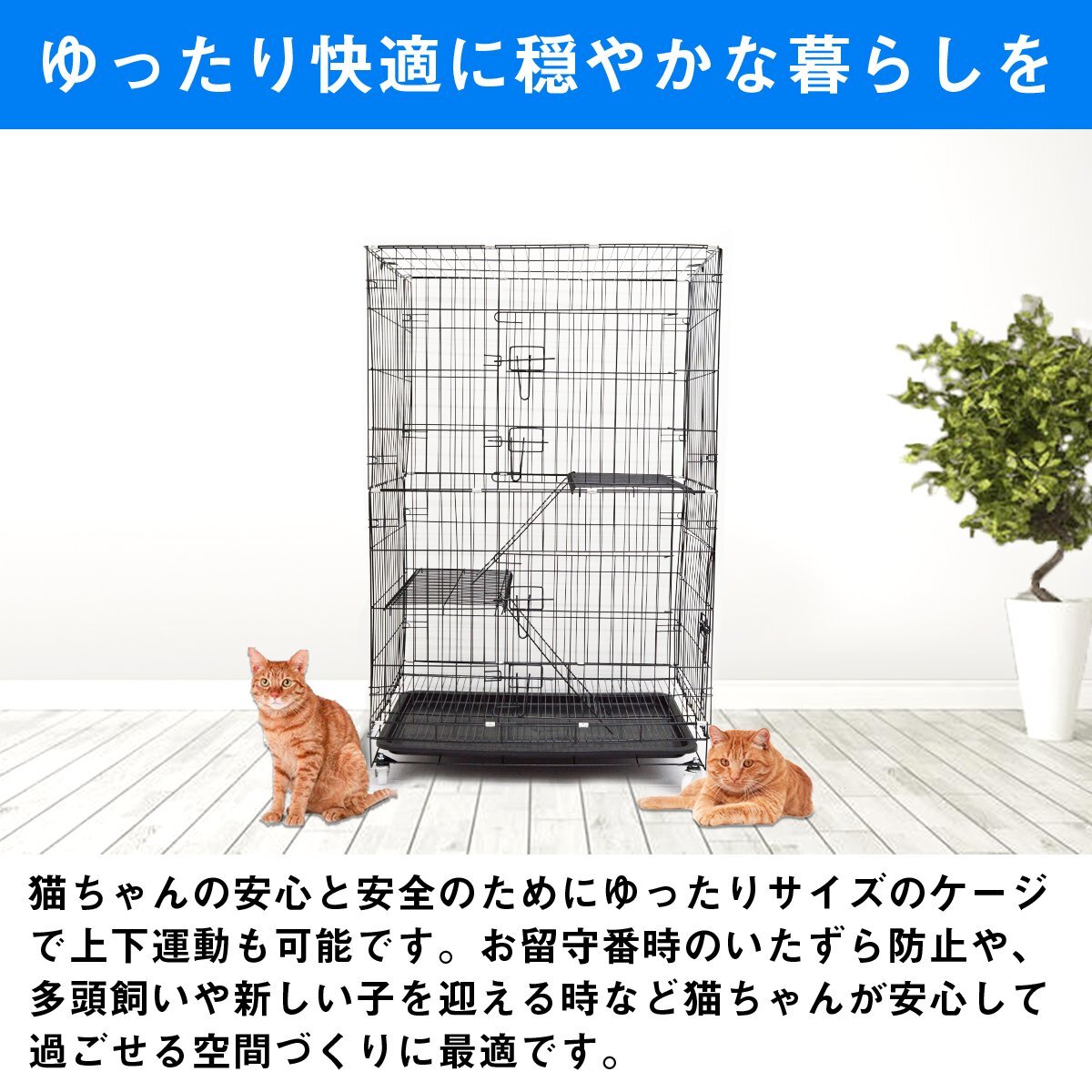 【新品即納】Lサイズ 3段 猫 キャットケージ キャスター付 ペット ゲージ ブラック 黒 猫 子猫 ハンモック 付き 幅76 奥行き52 高さ120