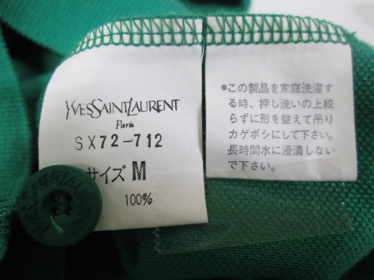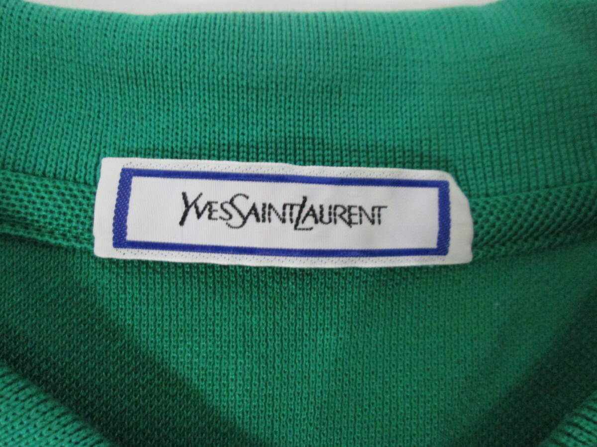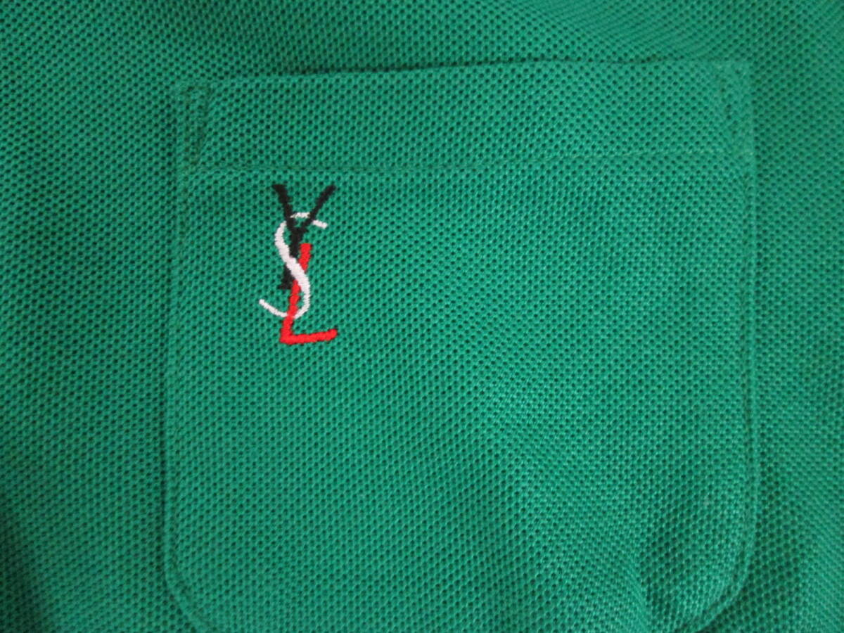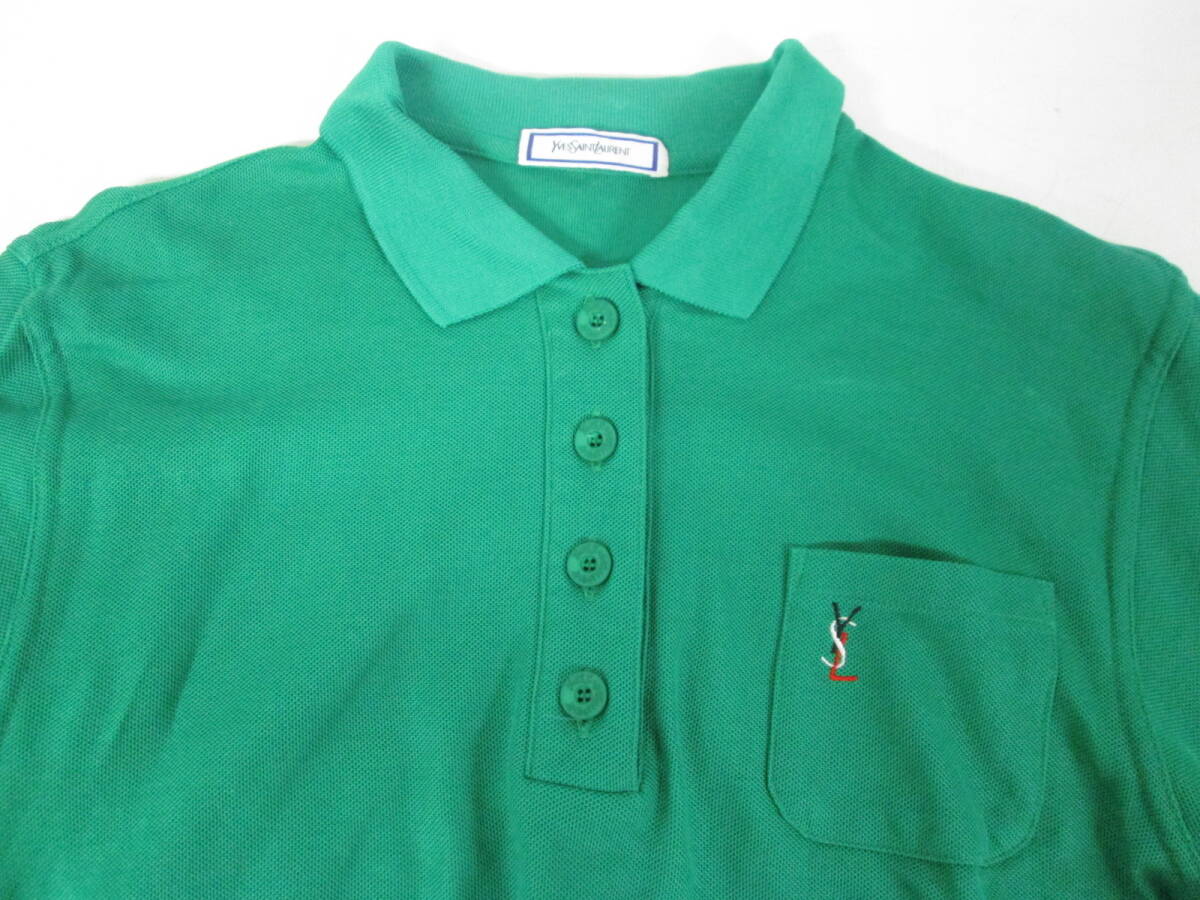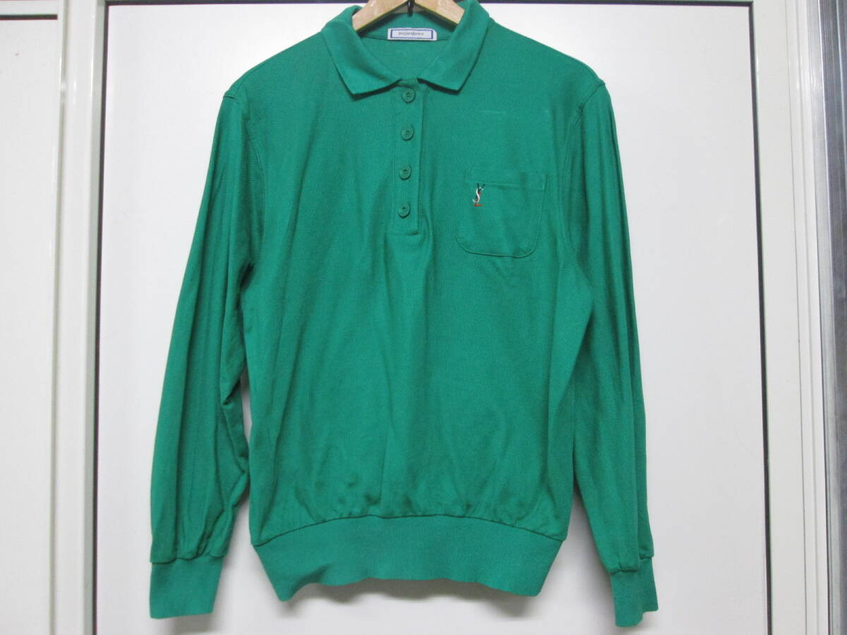 【1002h Y19640】 イヴ サンローラン YVES SAINT LAURENT 長袖 ポロシャツ グリーン サイズM 鹿の子 レディースヴィンテージ 古着