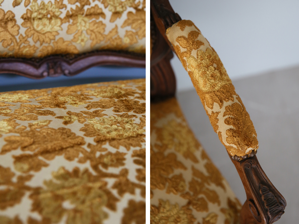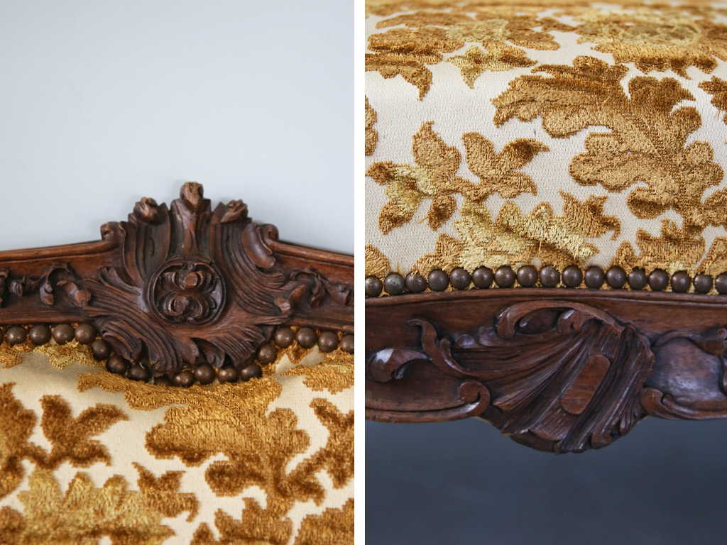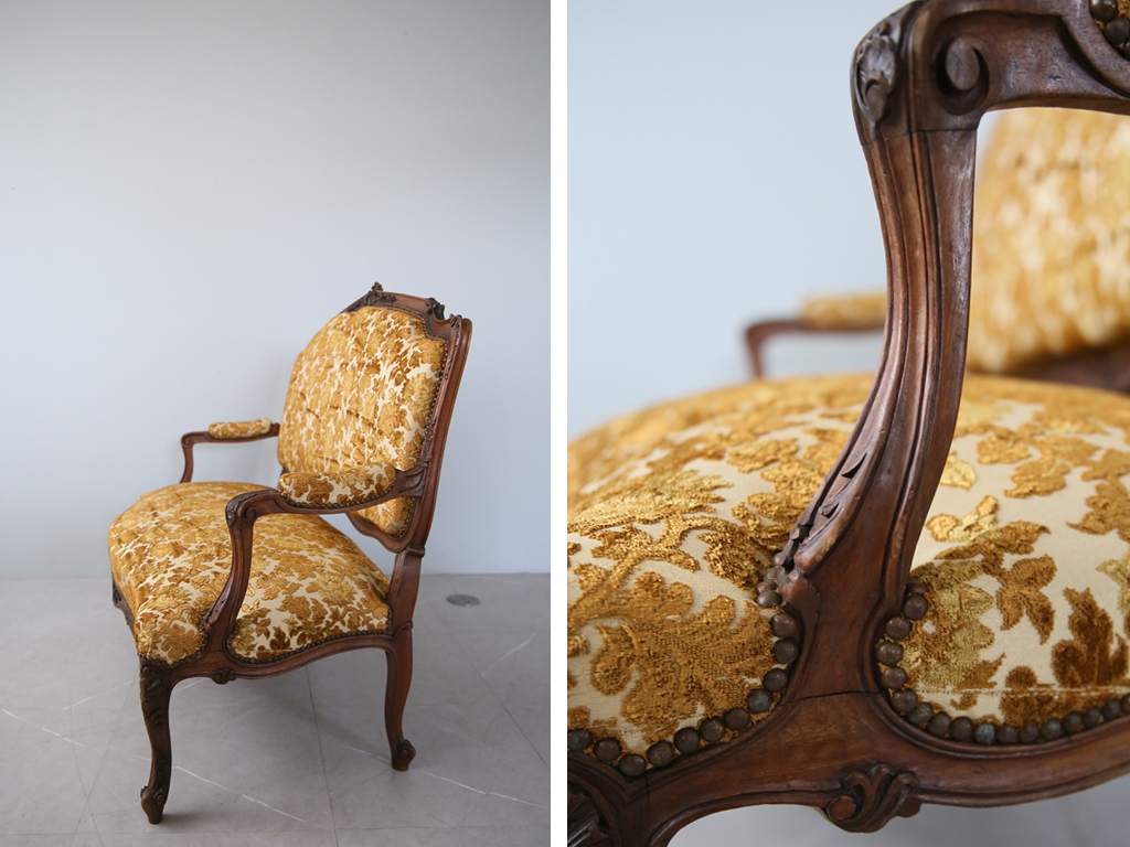 リメイク品のフレンチソファとは異なり本物だけが放てる重厚な存在感が魅力の一品。