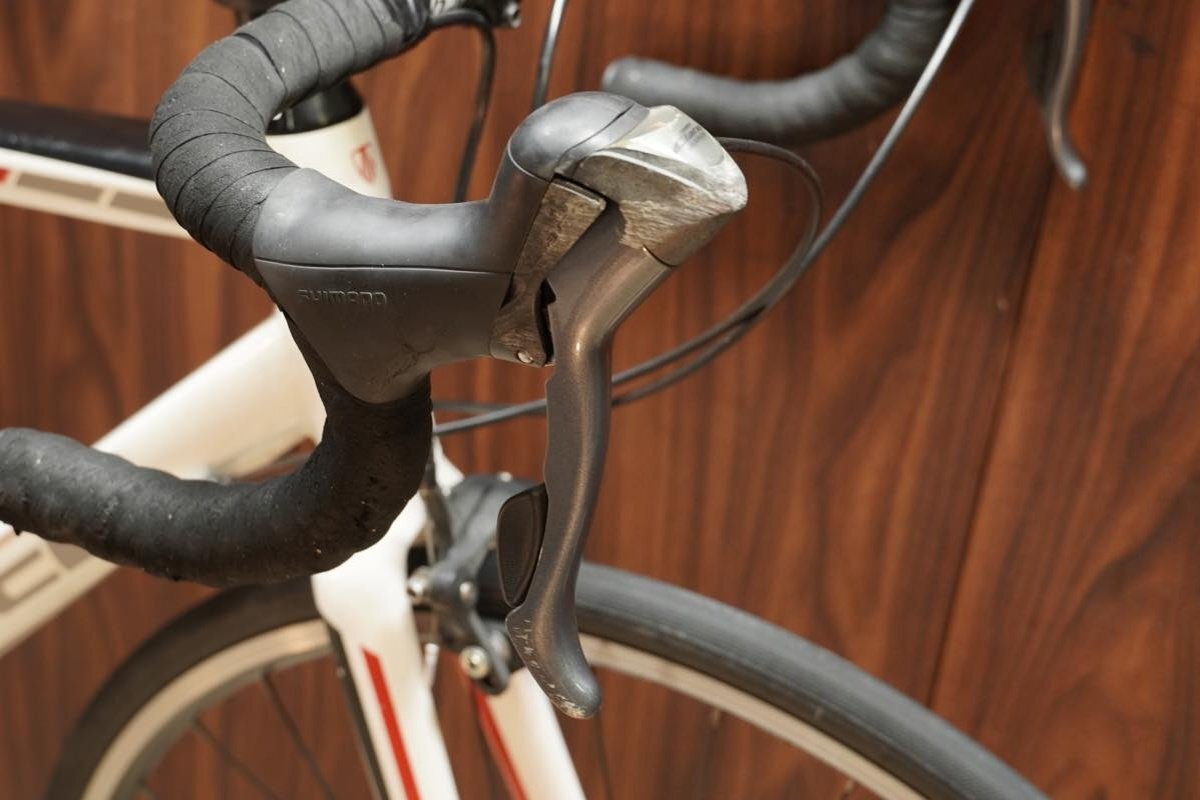 年式:2014 フレーム:アルミ フォーク:カーボン メインコンポ:SHIMANO claris 2400 2X8S クランク:ORIGINAL 170mm 50T:34T ホイール:BONTRAGER AT-750 タイヤ:700X25C クリンチャー スプロケット:8S 11T:32T ハンドル幅:400mm ステム長:90mm サイズ:52 トップチューブ長(C-C):535mm (※ホリゾンタル換算値) シートチューブ長(C-T):490mm 適応身長:165cm~175cm程度 実測重量:9.55kg ※掲載画像状態 |