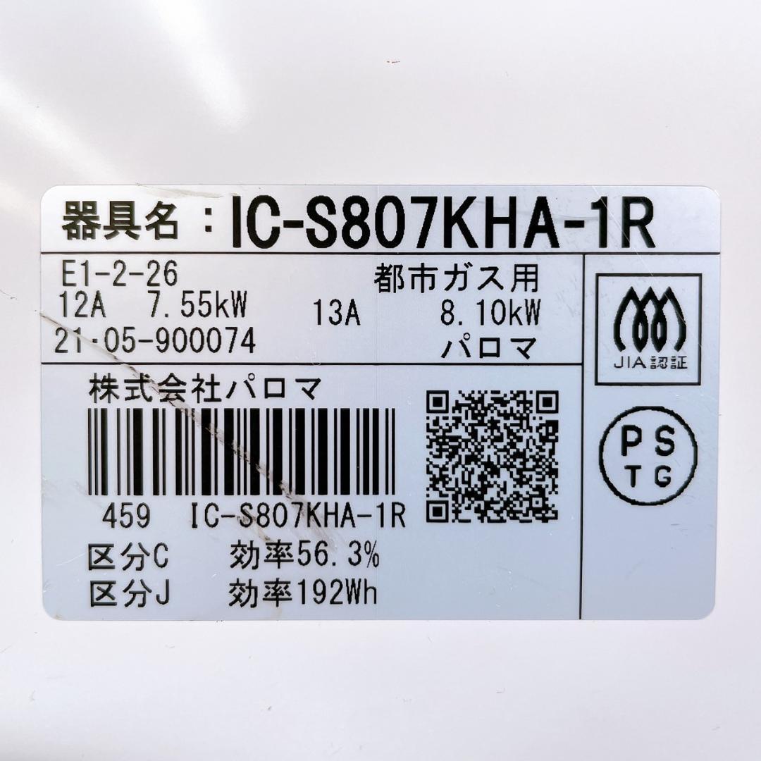 パロマ製の都市ガス用ガスコンロ「IC-S807KHA-1R」です。