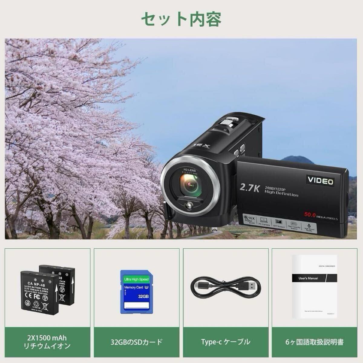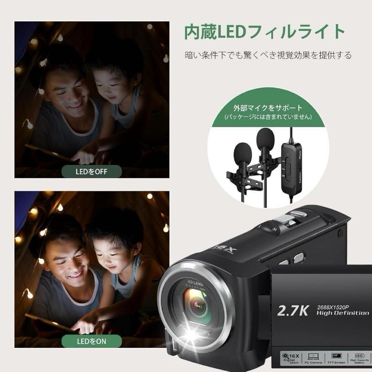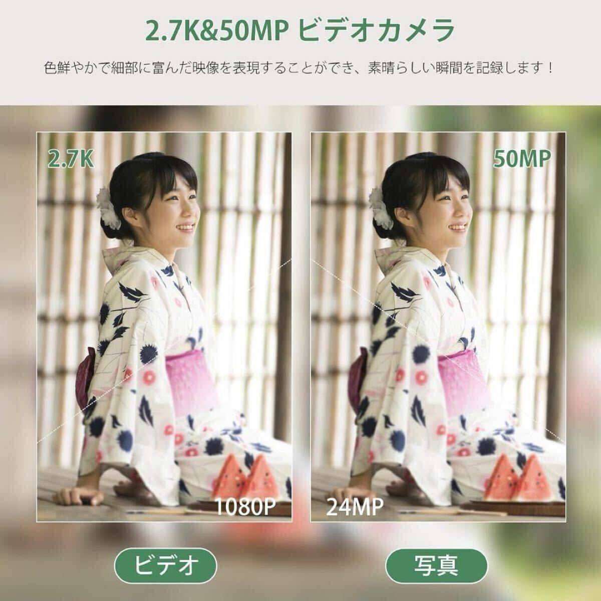 【2.7K&5600万画素 ビデオカメラ 】このビデオカメラは、複雑な機能が一切無し、コスパを重視するベシックセットであることが一番のメリット。2.7 Kと16倍デジタルズームレンズを搭載したビデオカメラは、高精細な動画や5600万画素の写真を撮影することができます。色鮮やかで細部に富んだ映像を表現することができ、素晴らしい瞬間を記録することができます。 付属の32GBメモリーカードですぐに撮影を始められます。 また、このカメラは440 gと非常に軽量で、日常生活もアウトドア旅行もスポーツも、いつでもどこでも美しい生活の瞬間を記録することができます。