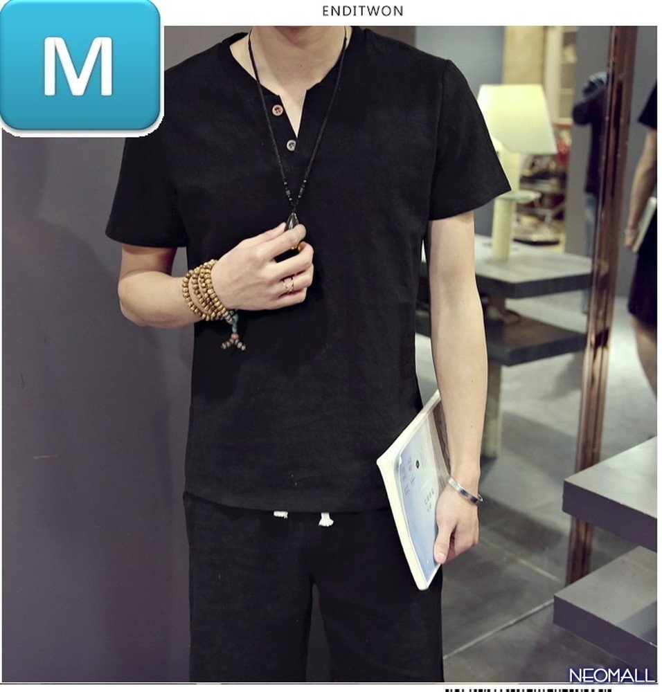 人気商品☆【276】 新品 サマーコットン ヘンリーネック セットアップ ブラック Mサイズ 春 夏 部屋着 ルームウエア