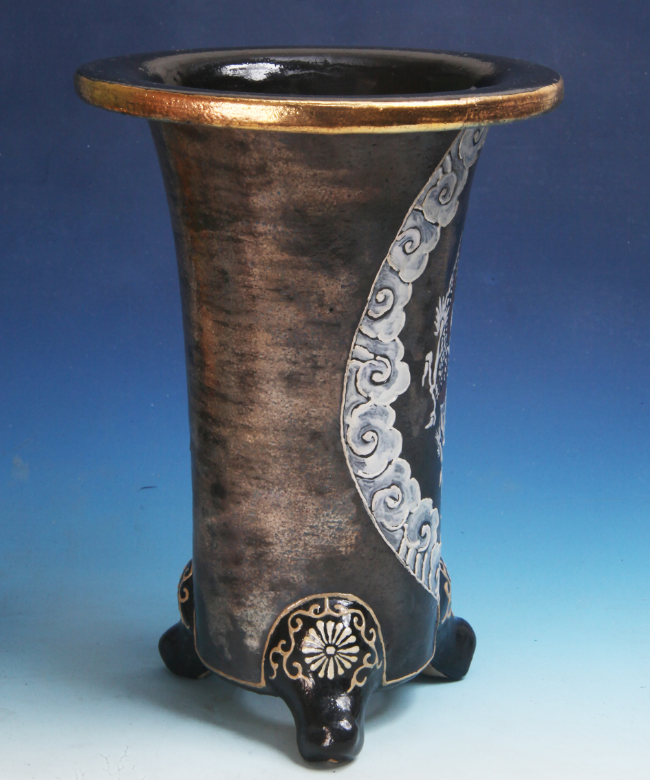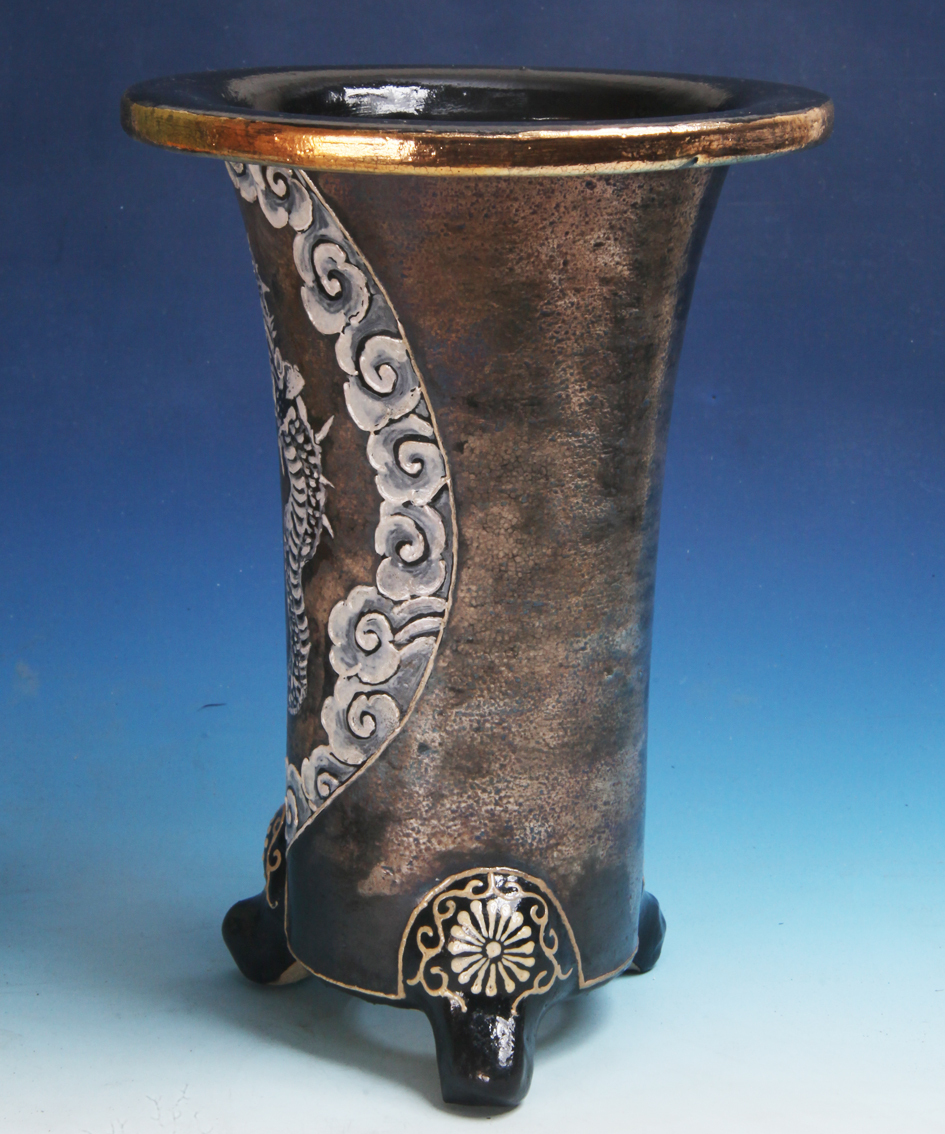 №528 錦鉢 「白竜」京楽焼 蘭鉢6.0号鉢 奏山 #万年青鉢 #羽蝶蘭鉢