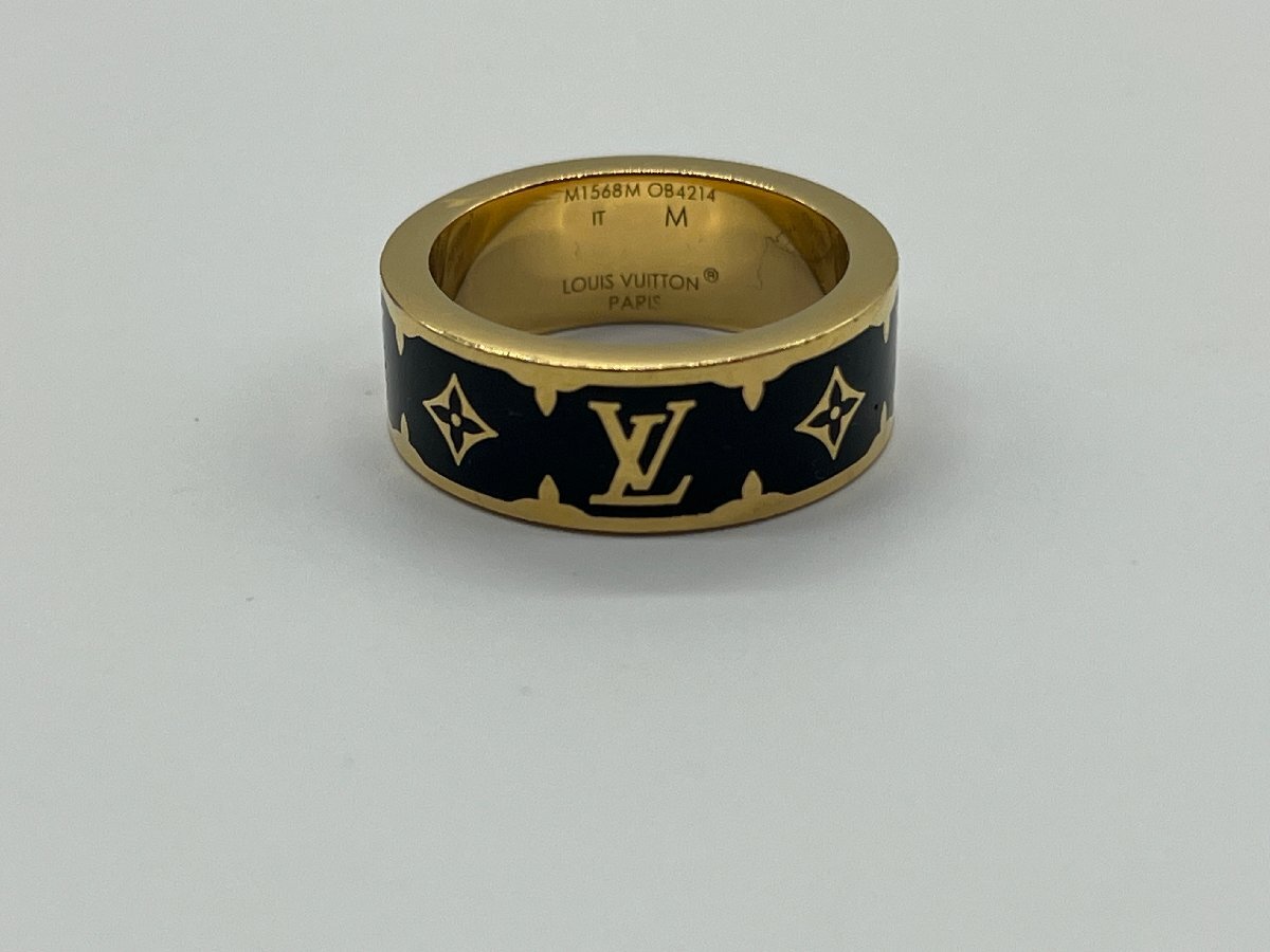 β人気・レア【LOUIS VUITTON ルイヴィトン M1568M リング ナノ グラム エナメル リング 指輪 サイズM(13号) ブラック】ON02412