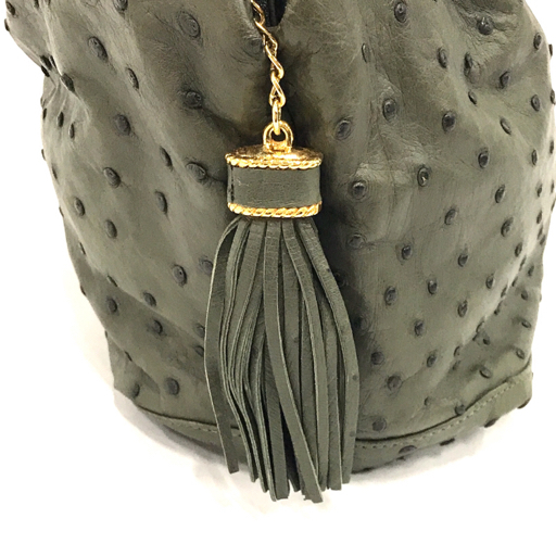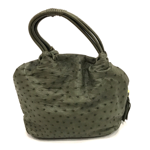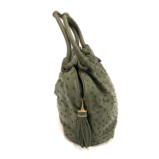JRA SANPO オーストリッチ レザー ハンドバッグ カーキ系 レディース タッセル付き かばん 鞄 カバン A20891 |