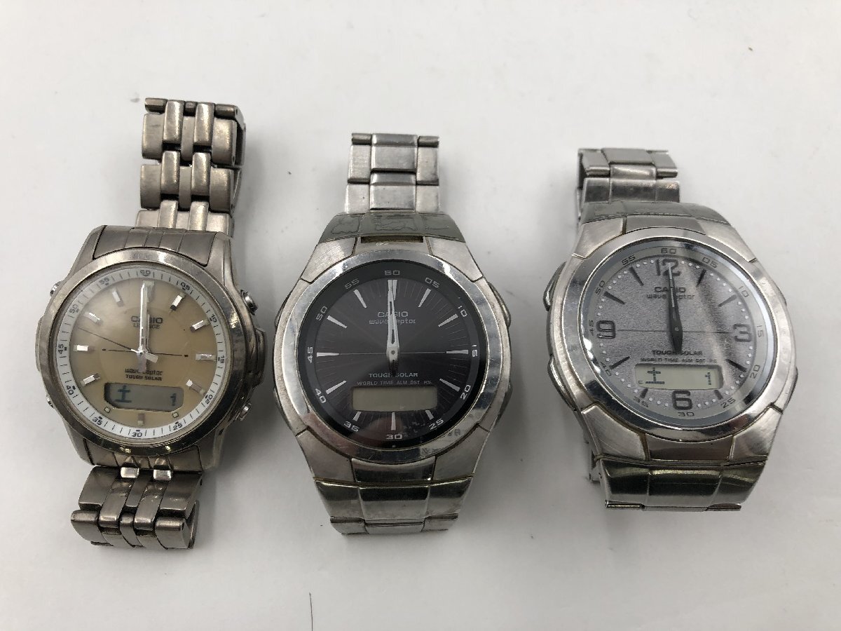 ■ ♪▲【CASIO】wave cepter TOUCH SOLAR ブラック/グレー/ホワイト文字盤色 アナデジ ソーラー式腕時計 3点セット WVH-100J ■ |