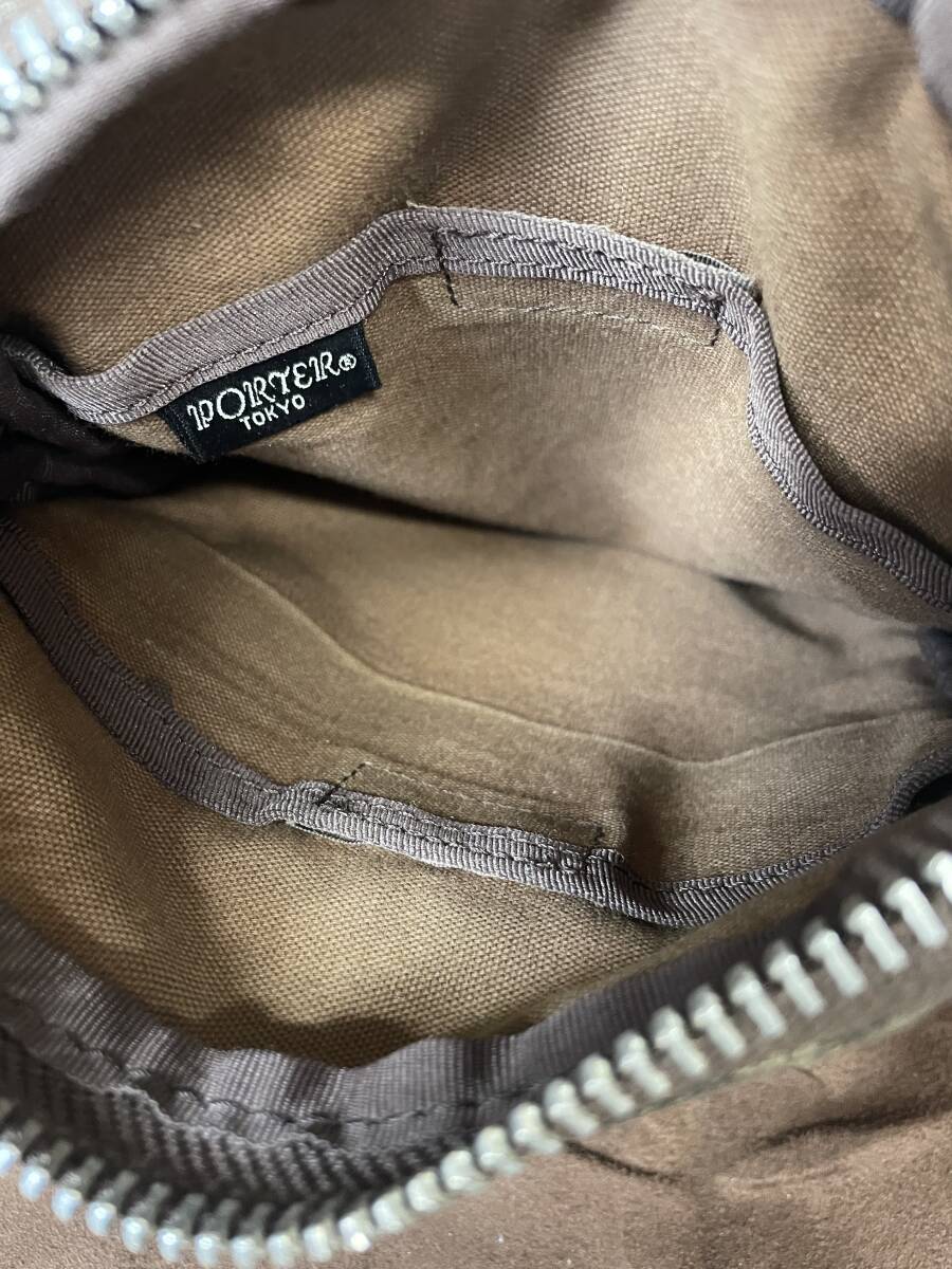Made in Japan のPORTERより、コットン素材のブラウンカラー小型ショルダーバッグでございます。