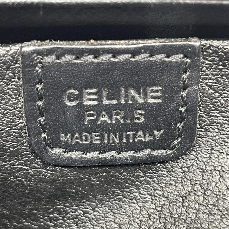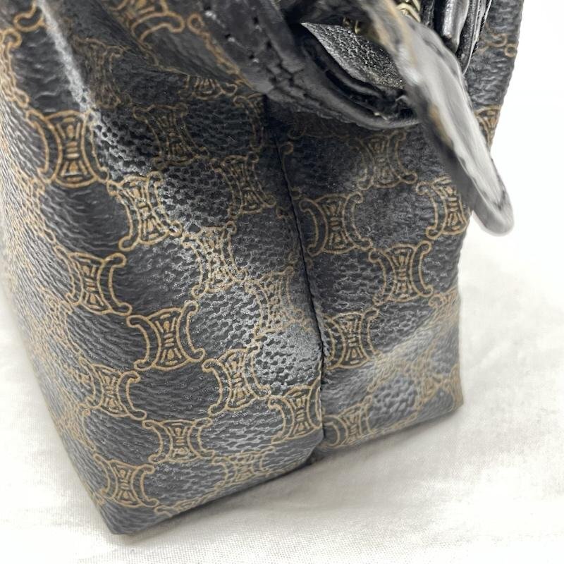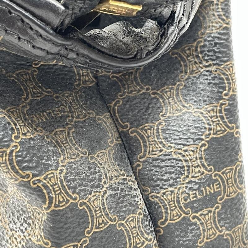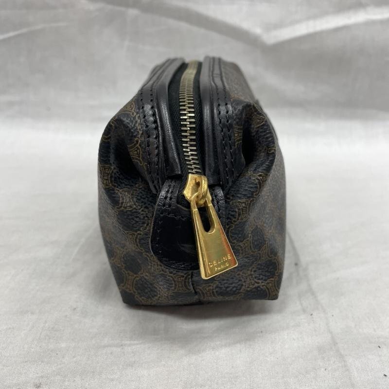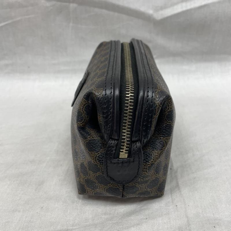 セリーヌ マカダム柄 PVC BRW 総柄 化粧ポーチ オールレザー ゴールド金具 -