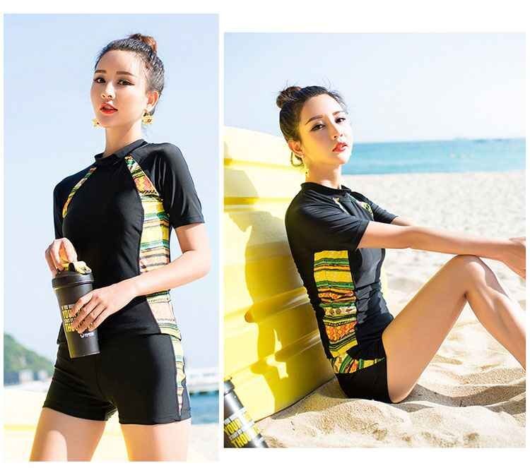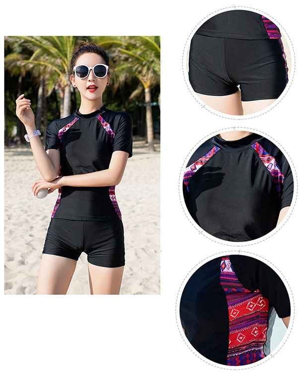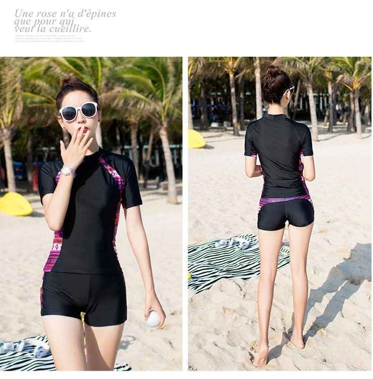 水陸両用で、プールやビーチはもちろんのこと、フィットネス、ウォーキング、海外旅行先で、ラッシュガード付きの水着はとても便利。