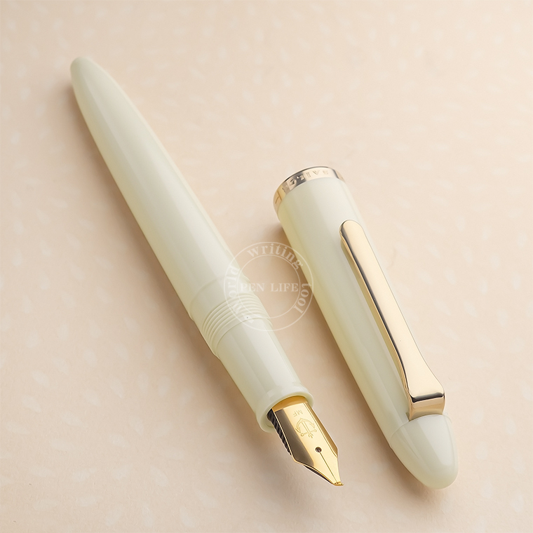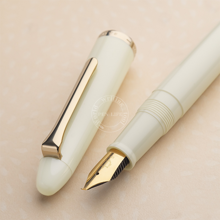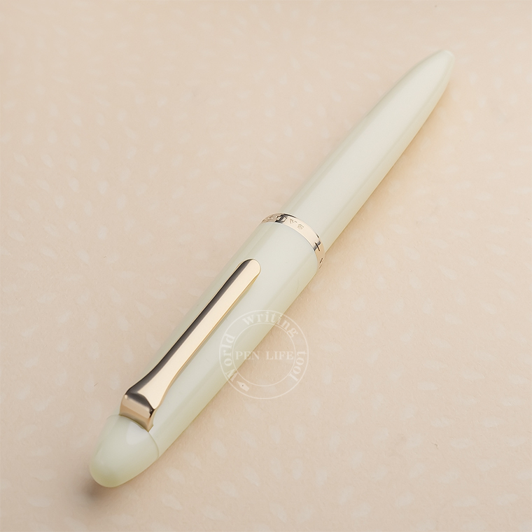 【WANCHER×SAILOR】 ふでDEまんねん プロフィット アイボリー 新品 送料無料 ![]() SAILOR PROFIT / ふでDEまんねん 2016年の発売開始以来、透明軸シリーズをはじめとするコラボレーションカラーは、 世界中のお客様から称賛の声を頂きました。 回ご紹介するのは、いつもと少し趣向を変えて・・。 セーラー万年筆の中でも他にはない特殊なニブを持った【ふでDEまんねん アイボリー】を ご紹介します。 ![]() 基本的な構造は一般的な万年筆と同じなのですが、ペン先の形状が大きく異なります。 上向きに湾曲した独特な形状を持った「ふでDEまんねん」は、筆記の際の角度により、 細い筆跡から太めの筆跡へと変化するため、生き生きとした文字を書くことができます。 ペン先の曲げ角度は1種類のみで、55度タイプとなります。 以前のモデルは角度が浅く作られていましたが、55度になった理由として、 ボールペン・ペンシルを使う現代人に 合わせたと考えられます。 ![]() セーラー万年筆を代表する「プロフィット」をベースに、少し黄みがかった アイボリー色 (象牙色)の樹脂を採用した柔らかなカラーリング。 クリップ、キャップリングは、淡いボディカラーを引き立てるゴールドカラーですので、 シンプルなデザインに上品さをプラスしています。 ![]() ふでDEまんねんのペン先は、中国の美工筆という名称で知られることが多いかと思います。 美工筆といえば、中国で生まれた特殊なペン先で、様々な筆記具メーカーが作っているほど、 需要の高い筆記具であり、ブランドごとにペン先の角度や広さ、あたり具合など微妙に 特徴(クセ)があります。日本ではセーラー万年筆のみの製作となるため、中国の美工筆と 書き味の違いを楽しむのも面白いかと思います。 【セーラー万年筆】 1911年広島県呉市稲荷町にて創業し、1948年には業界のトップを切ってボールペンを発表した 老舗メーカー。1958年にカートリッジ式万年筆を発売しました(特許取得昭和29年)。 その後も次々と画期的なヒット商品を送り出しています。 ![]() *********************************************************************** <詳細 【WANCHER×SAILOR/セーラー】限定カラー ふでDEまんねん プロフィット アイボリー 万年筆 美工筆 デコペンタイプ 曲げ角度55度 日本製 > ペン先 : ステンレス 金色メッキ サイズ : 特殊ペン先 角度55度 機構 : カートリッジ・コンバーター両用式 材質 : AS樹脂 長さ : 134mm 太さ : 12mm 重さ : 12.2g 付属品 : 発送用簡易白ケース・説明書・カートリッジ2本 新品 日本製 *********************************************************************** |