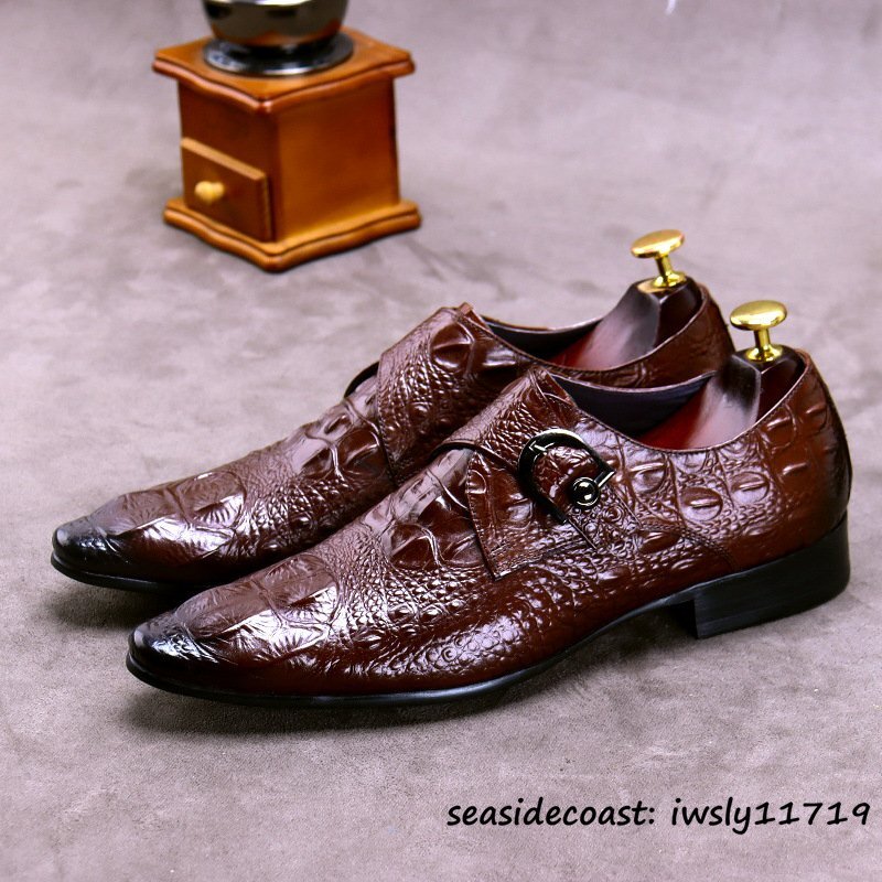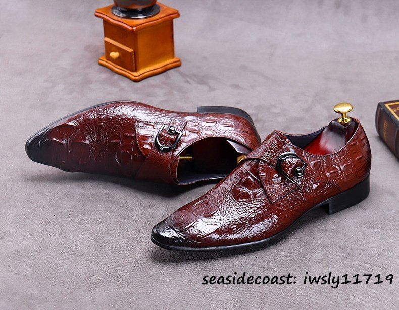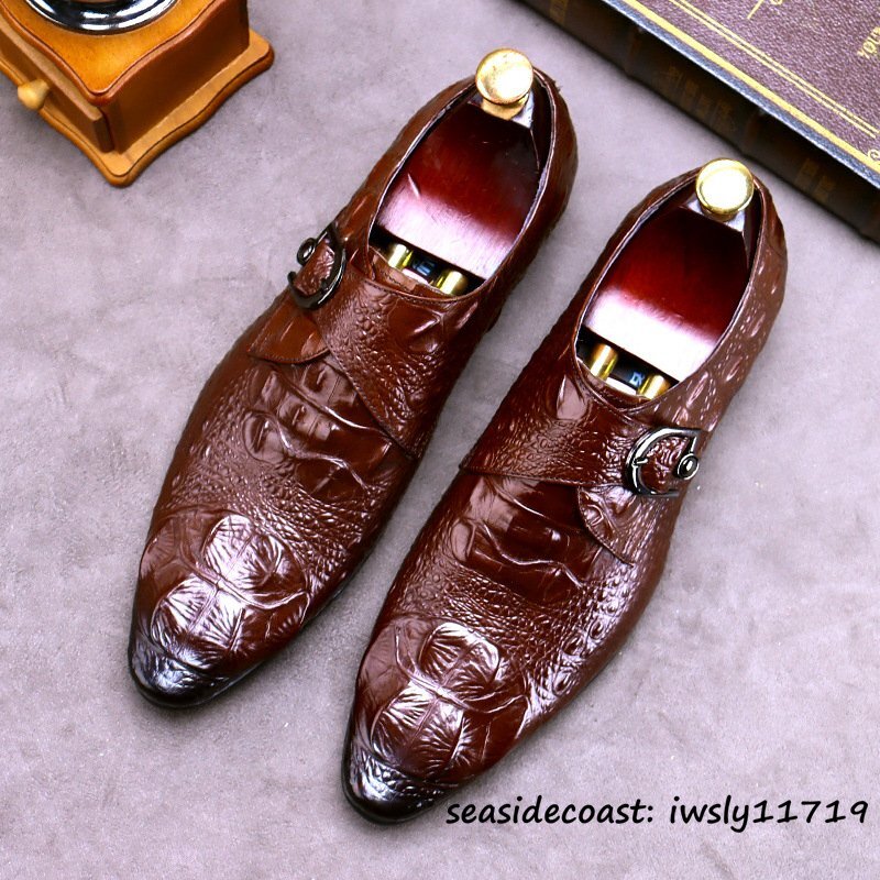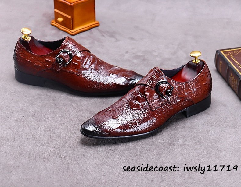 最高峰9万★ビジネスシューズ メンズ 超希少 本革 レザーシューズ 鰐柄 紳士靴 革靴 職人手作り 牛革 イギリス風 冠婚葬祭 レッド 26.0cm
