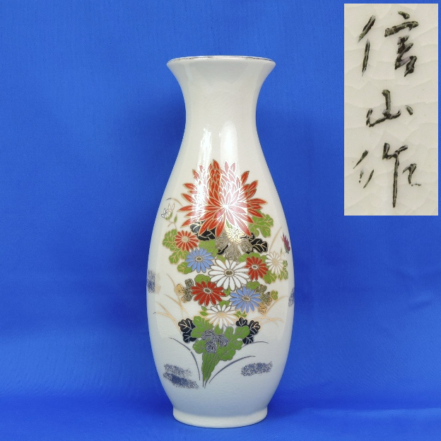 【中古】花瓶 信楽焼 信山作 花器 花入れ 壺 陶器 生け花 金彩縁 全長30cm | ||||||||||||||||||||||||||