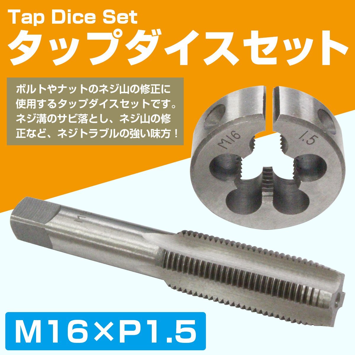 『M16×P1.5』タップダイス セット 目立て ネジ 山 修正 めねじ 再生 ねじ 穴 修復 補強 耐久性向上 雌ネジ 補修 工具 キット