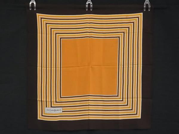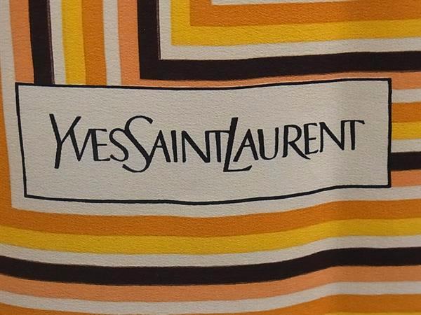 ■美品■ YVESSAINTLAURENT イヴサンローラン シルク100% 大判 スカーフ ストール ショール レディース オレンジ系 DI0208