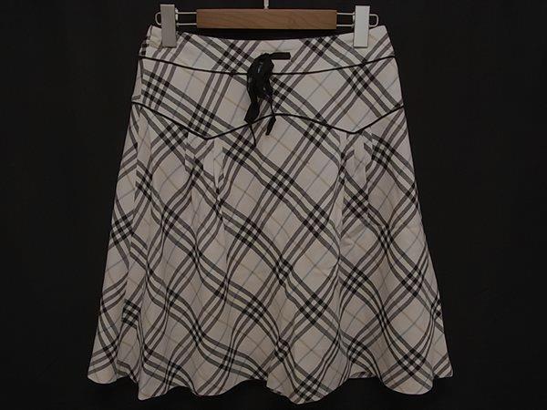 BURBERRY バーバリーブルーレーベル ウール100% チェック柄 プリーツ スカート ボトムス 表記サイズ 38 洋服 アイボリー系 DH0386