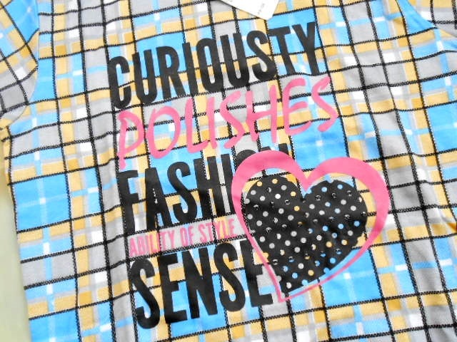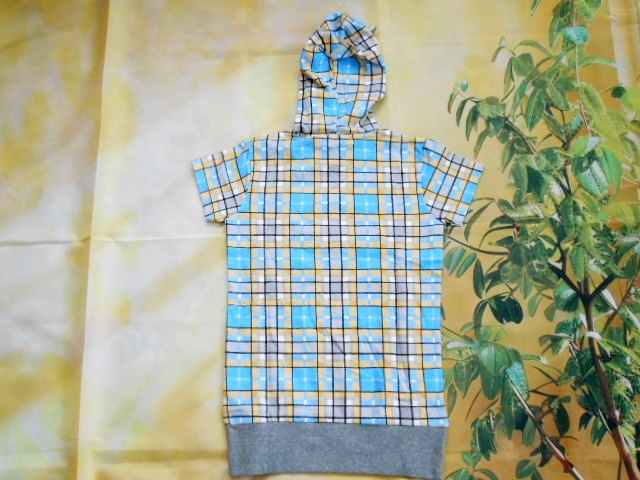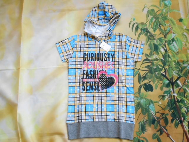 DC02☆ニッセン 半袖パーカーチュニック チェック柄 ハート 水色×オレンジ 120㎝ 未使用 ニッセン